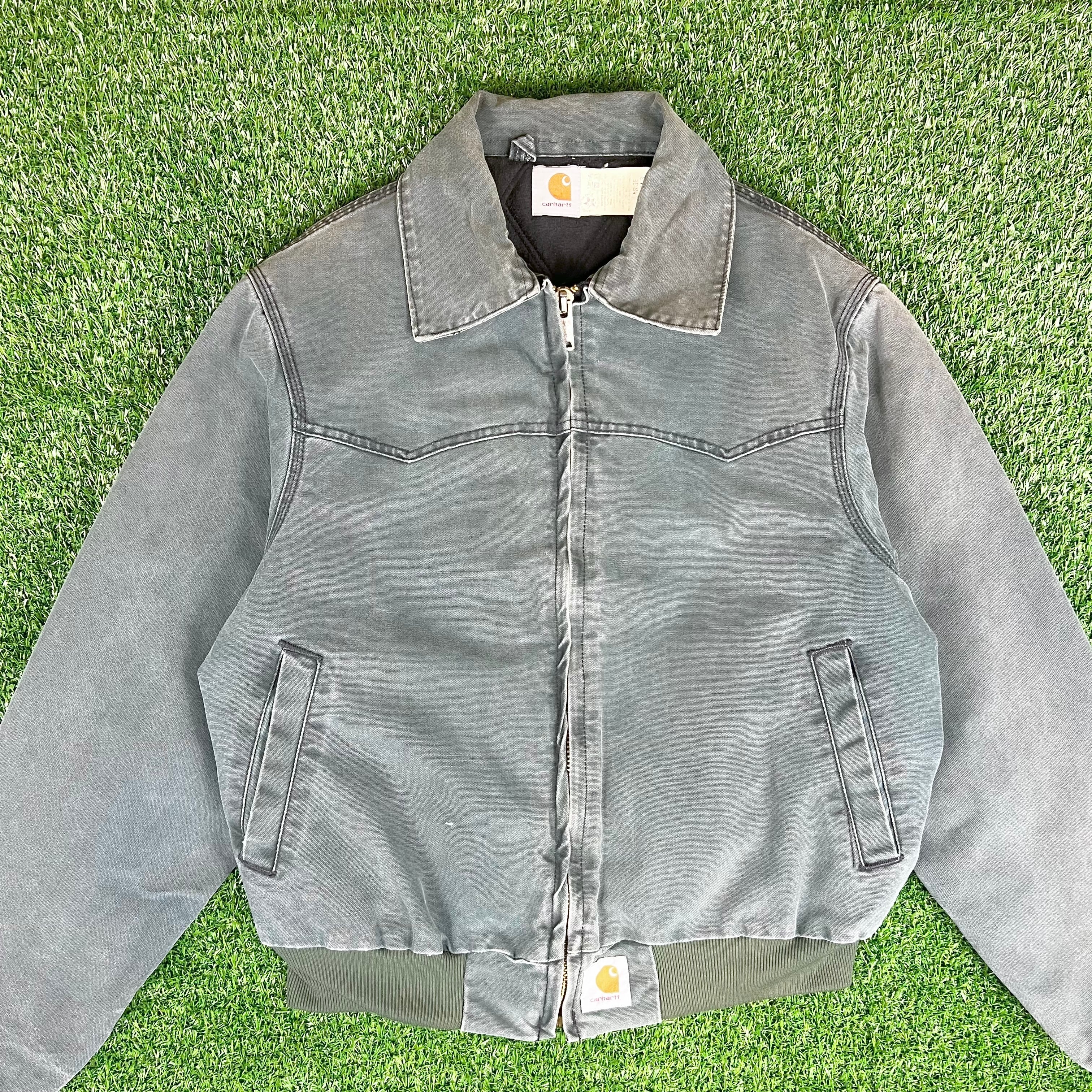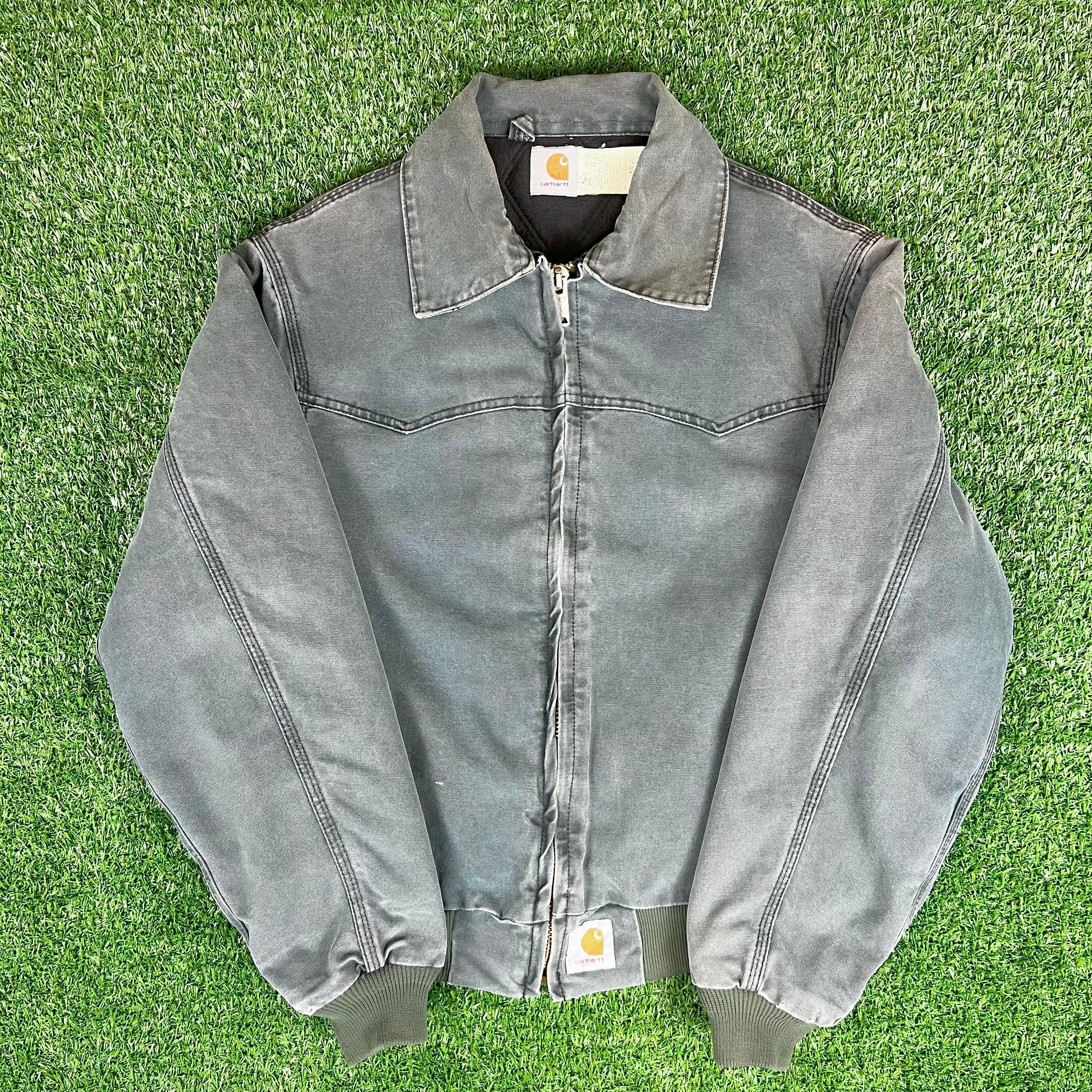 90s USA製 Carhartt サンタフェジャケット ダック地 モスグリーン 星タグ ダックジャケット サイズL カーハート アメカジ 古着 b26010003【コットンジャケット】