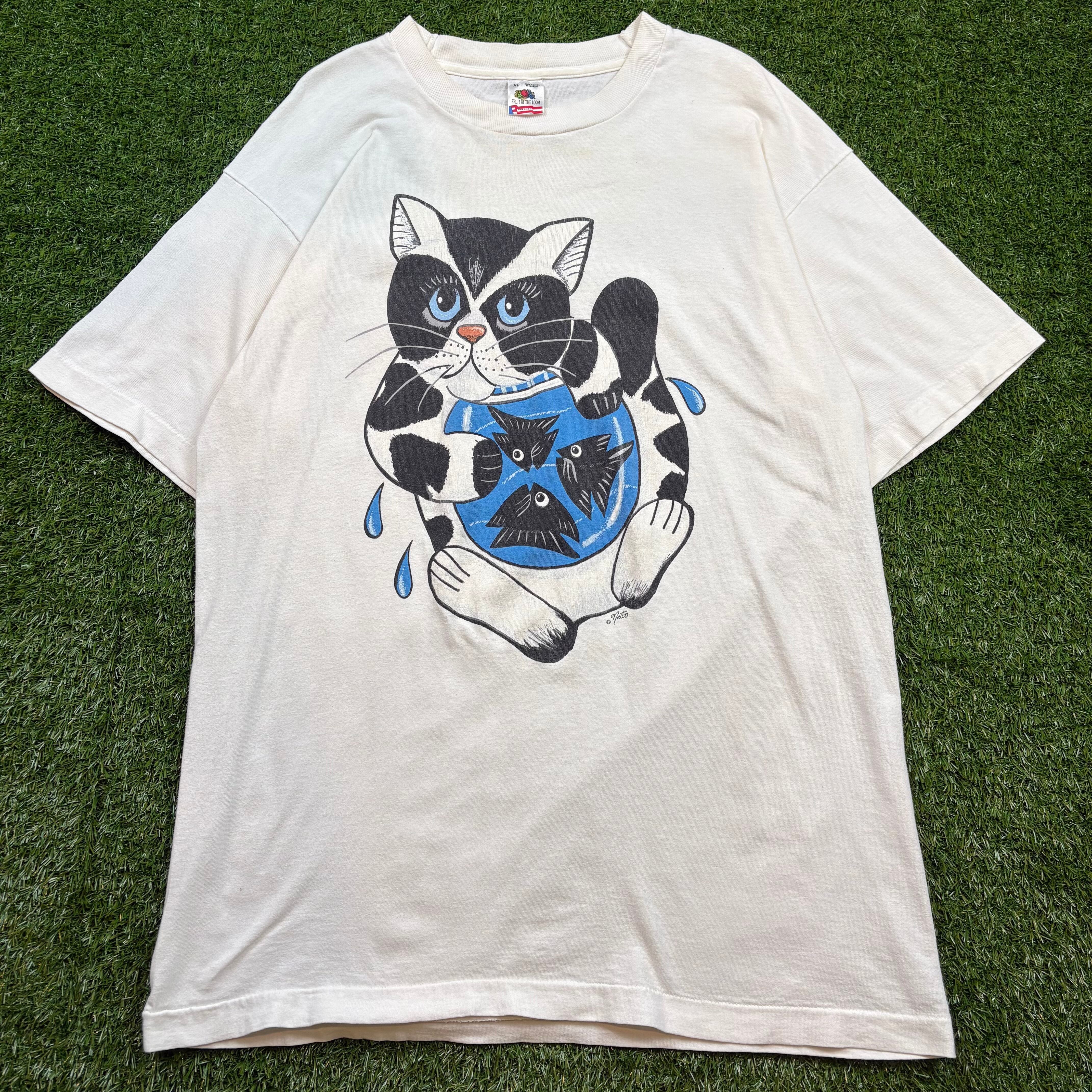 90s USA製 VINTAGE FRUIT OF THE LOOM グラフィック Tシャツ 猫 アニマル メンズ XLサイズ シングルステッチ 90s アメリカ製 ヴィンテージ ビンテージ アメカジ 古着 b26032047【Tシャツ】