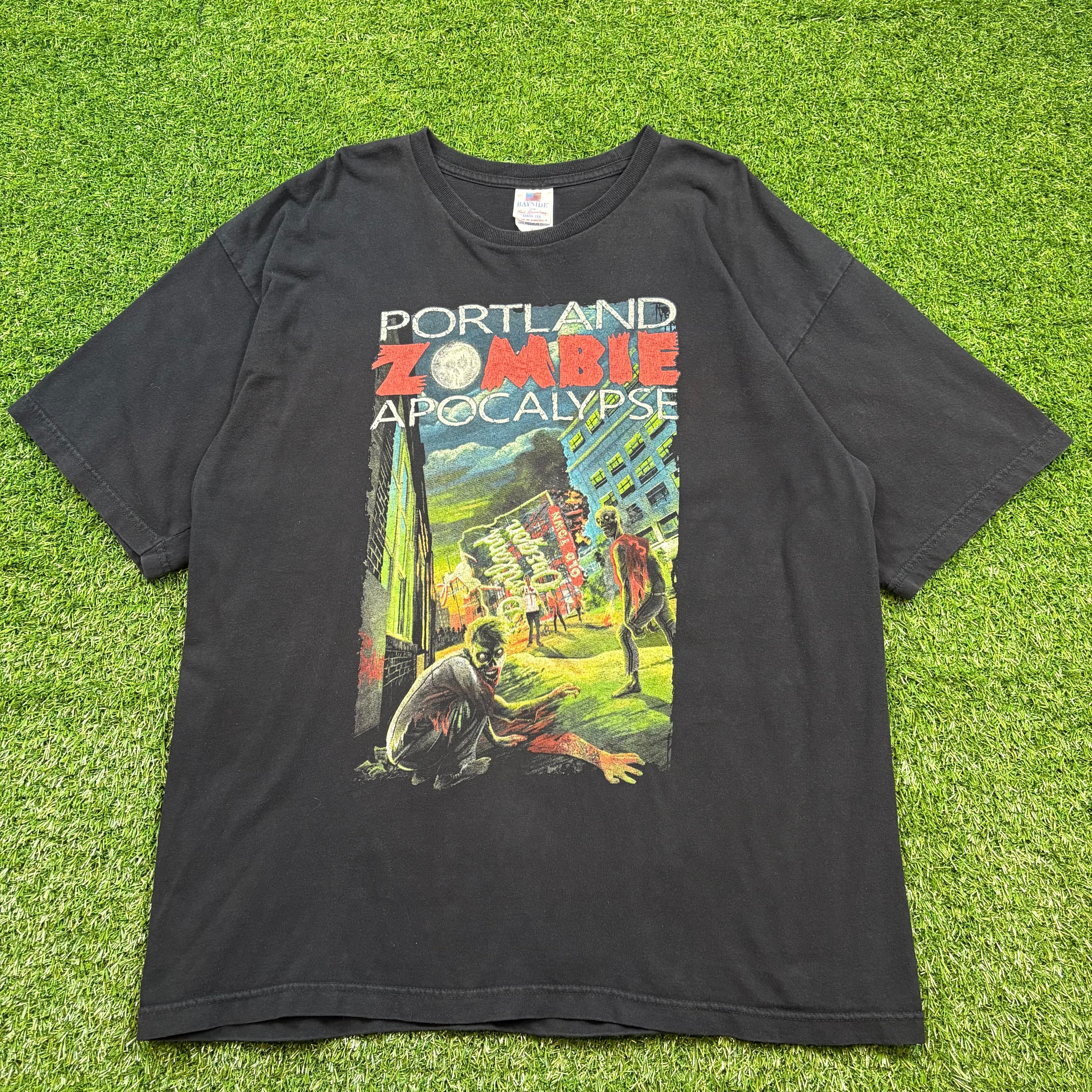 BAYSIDE USA製 ZOMBIE ポスター プリント T-sh Tシャツ サイズ メンズ XL Y2K ストリート アメカジ 古着 b26032055