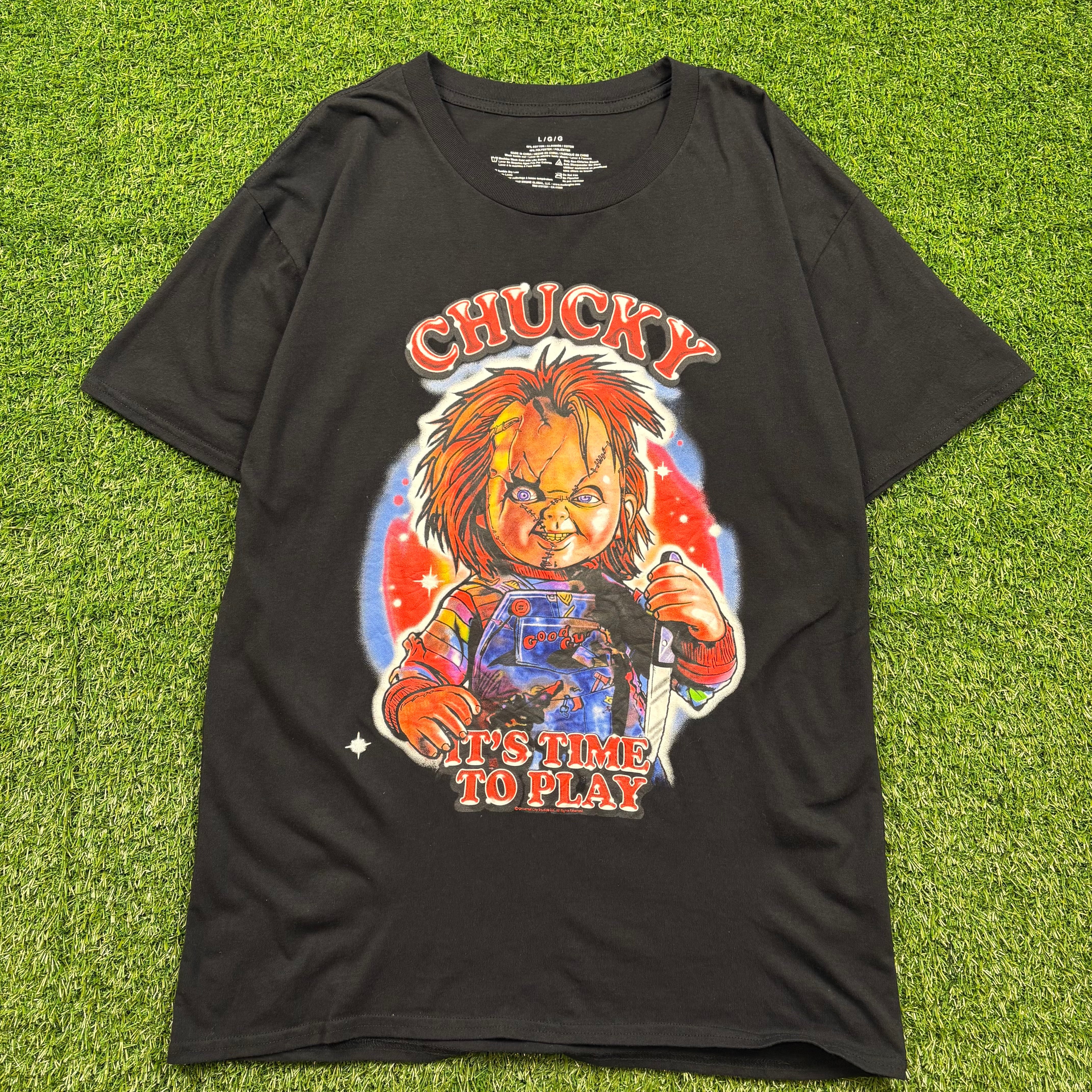 CHUCKY Horror ホラー チャッキー Movie キャラクター プリント T-sh Tシャツ Y2K サイズ メンズL ストリート アメカジ 古着 b26032091