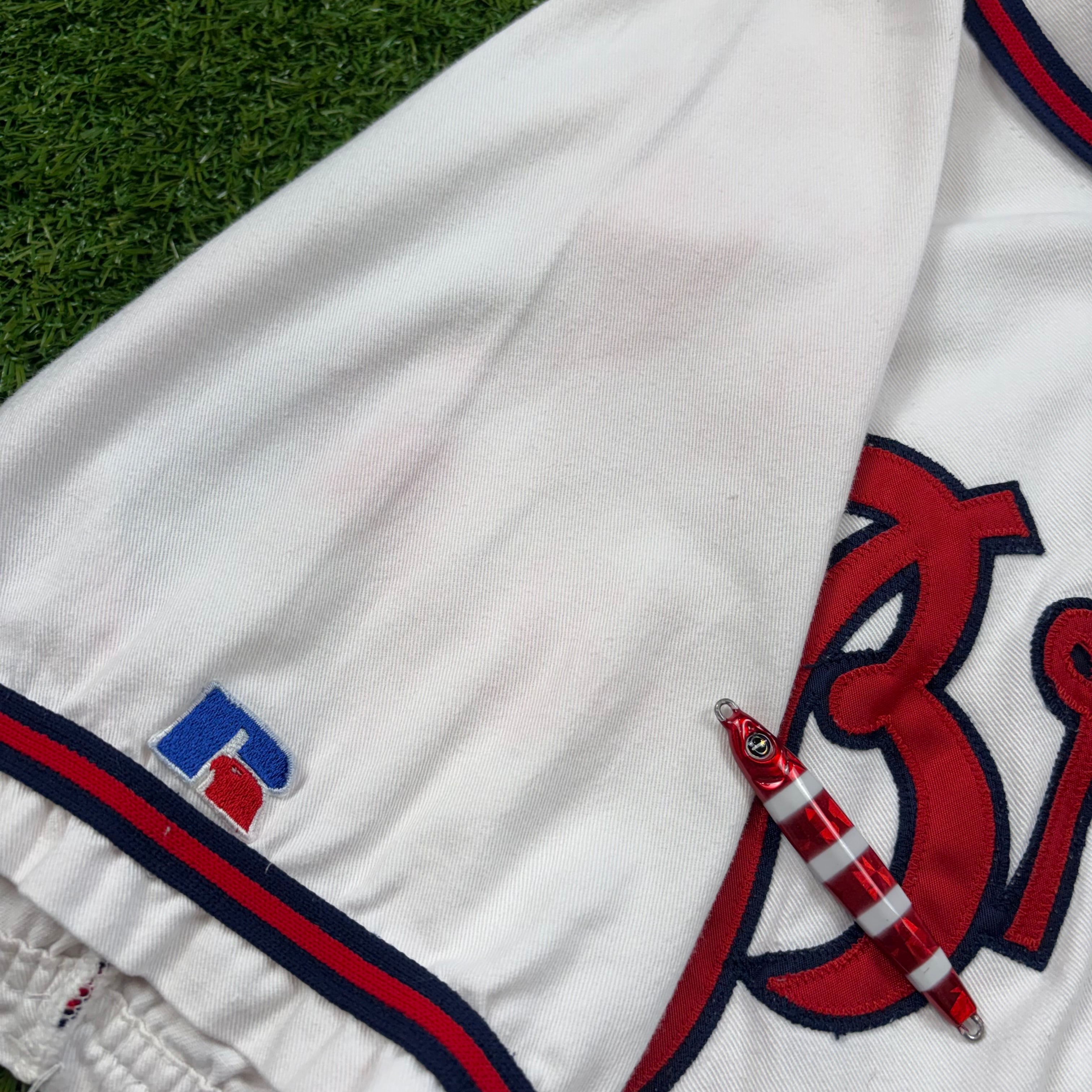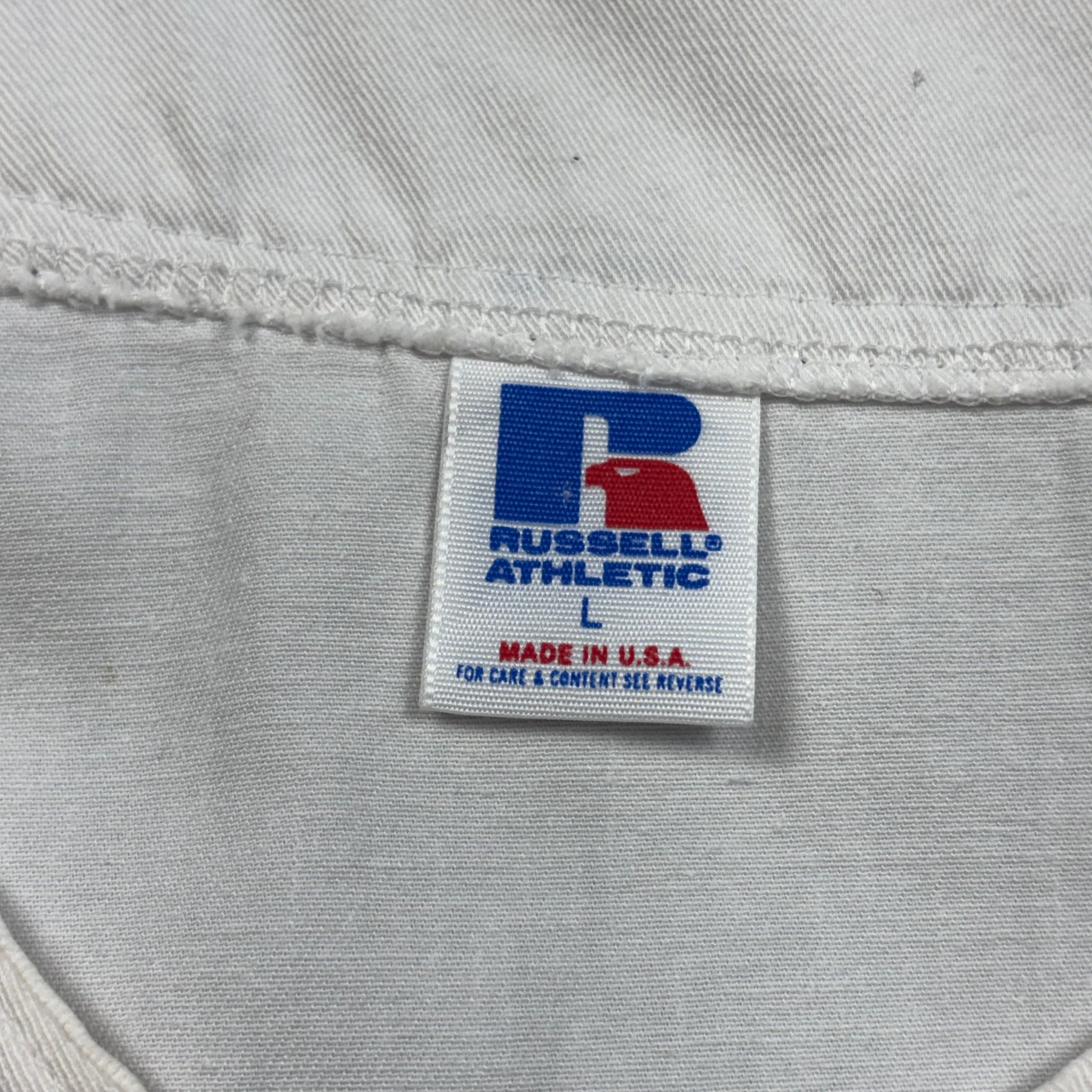 90s USA製 Russell ベースボールシャツ MLB Braves アメリカ製 T-sh Tシャツ サイズ メンズL ストリート アメカジ ビンテージ ヴィンテージ 古着 b26032098【Tシャツ】