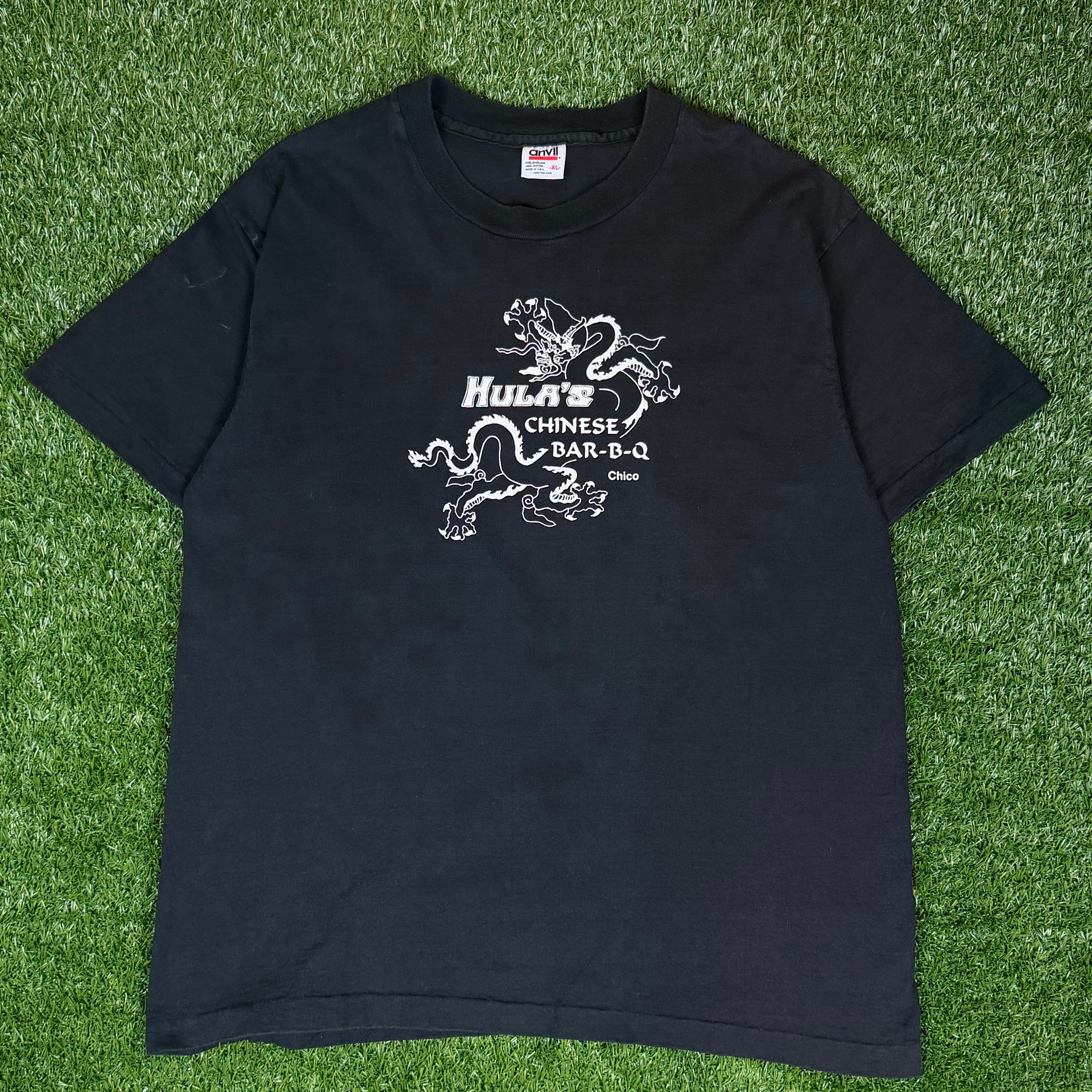 90s USA製 anivil HULA'S カルフォルニア州 チャイニーズレストラン 企業 プリント Tシャツ シングルステッチ メンズ サイズXL 90年代 ヴィンテージ ビンテージ ストリート アメカジ 古着 b26032932