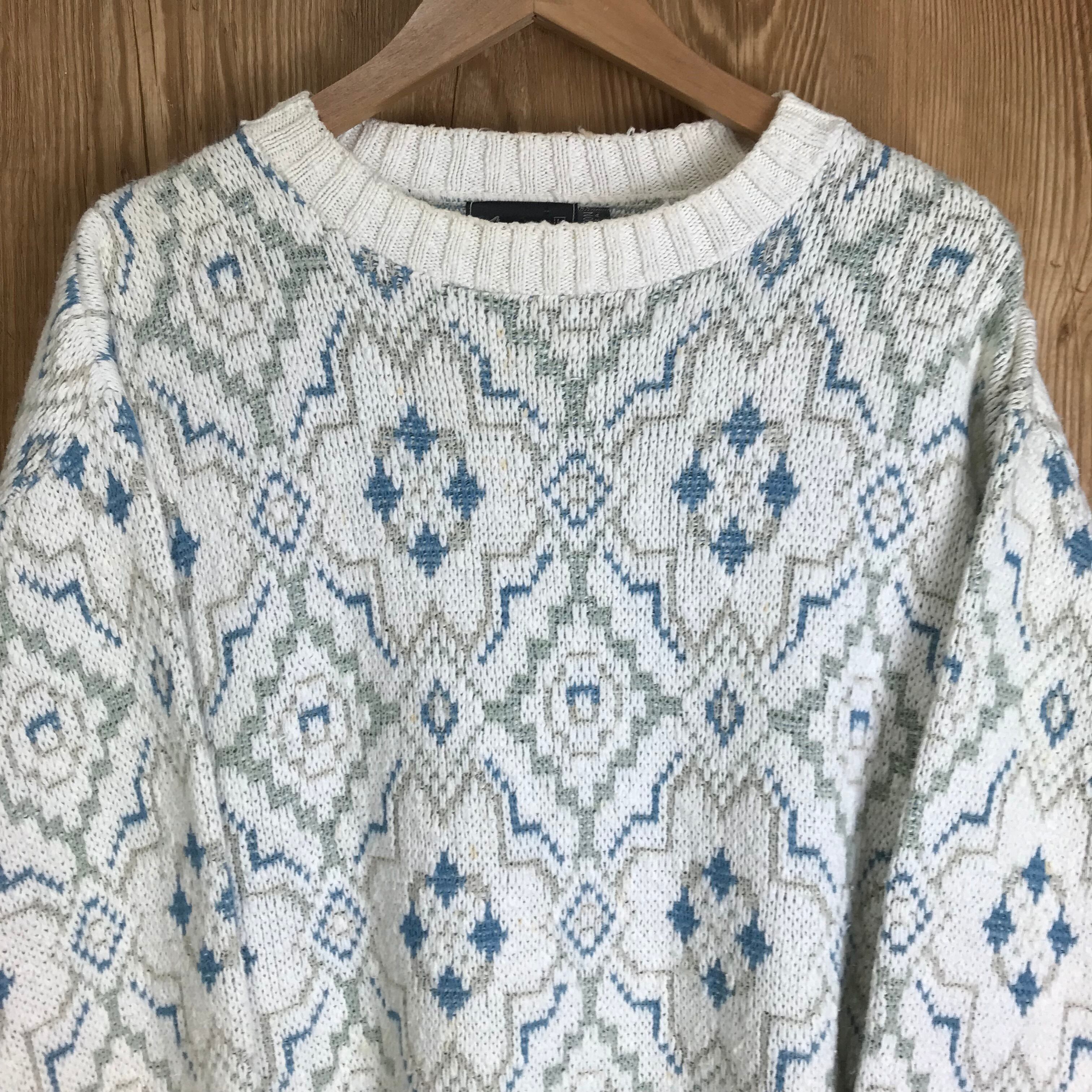 USA製 90s VINTAGE John Weitz オリエンタル柄 総柄 マルチ ニット セーター メンズLサイズ 90年代 アメリカ製 アメカジ ビンテージ ヴィンテージ 古着 e24030204