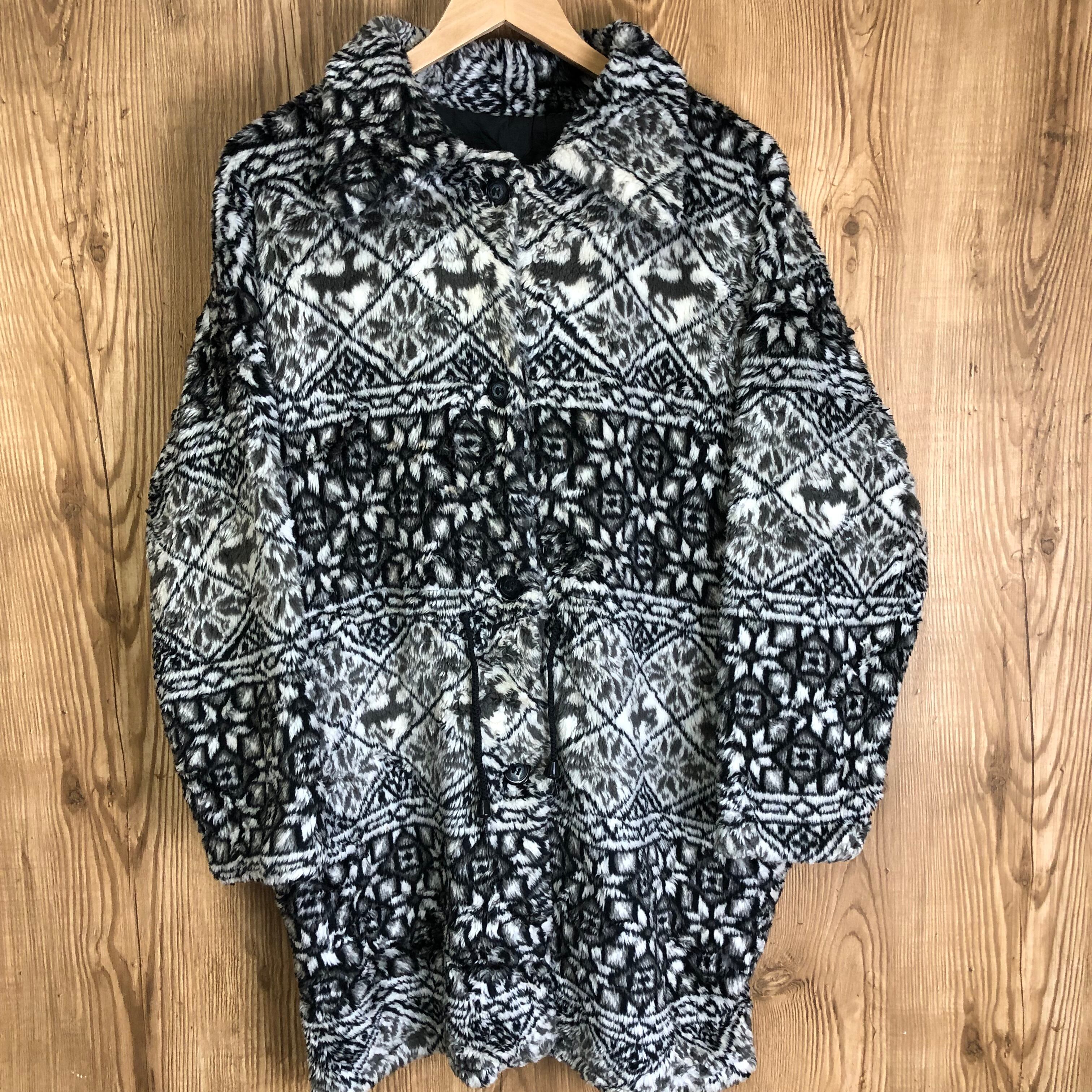 カナダ製 80s VINTAGE 総柄 フリースジャケット サイズL メンズ アニマル柄 80年代 ビンテージ ヴィンテージ アメカジ アウトドア 古着 e24030609