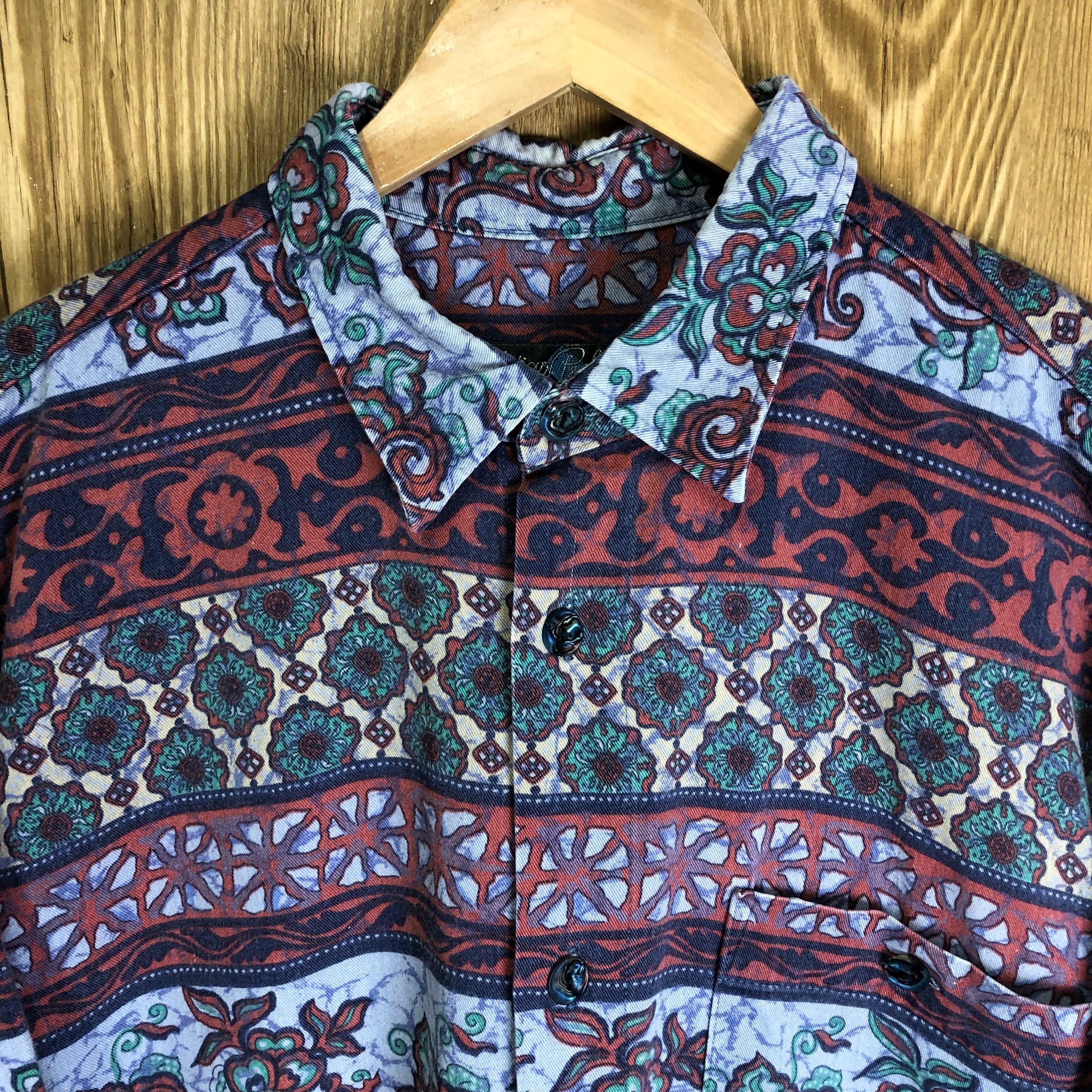 90s VINTAGE HATICO PERFORMANCE エスニック柄 ユーロブランド 総柄 長袖シャツ メンズXLサイズ程 90年代 ビンテージ ヴィンテージ 古着 e24031006【長袖シャツ】