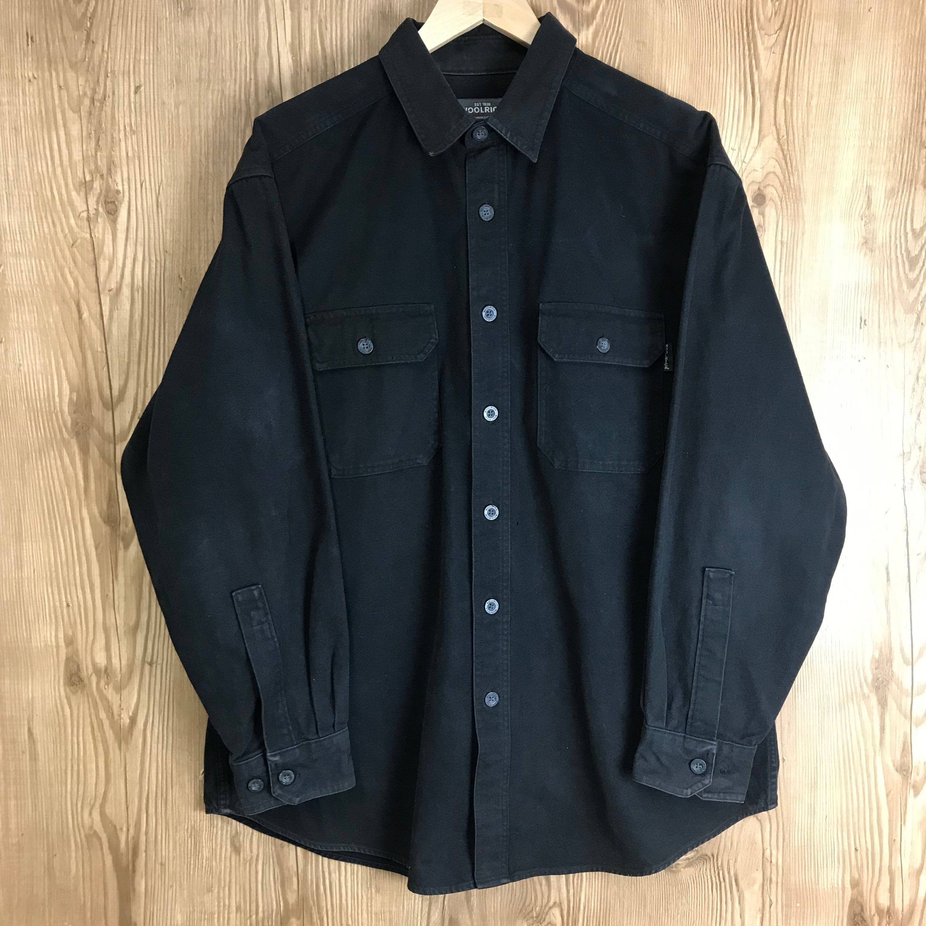 90s VINTAGE WOOLRICH ヘビーコットン 厚手 長袖シャツ メンズ Lサイズ 黒 ブラック 90年代 ウールリッチ ストリート アメカジ ビンテージ ヴィンテージ 古着 e24031606【長袖シャツ】