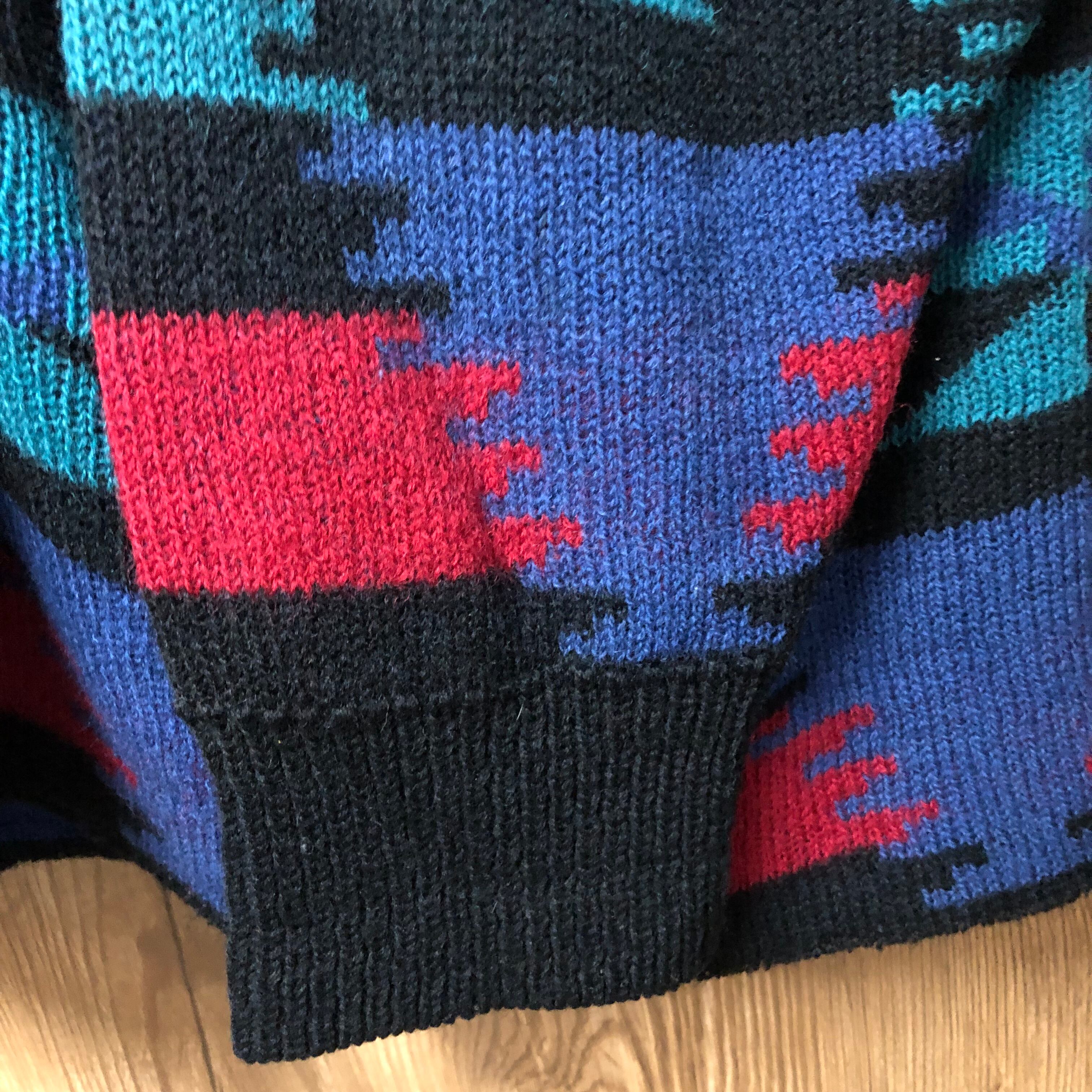 USA製 80s VINTAGE ネイティブ柄 ニット フルジップ ジャケット ポケット付き メンズL程 80年代 ビンテージ ヴィンテージ アメカジ 古着 e24031526
