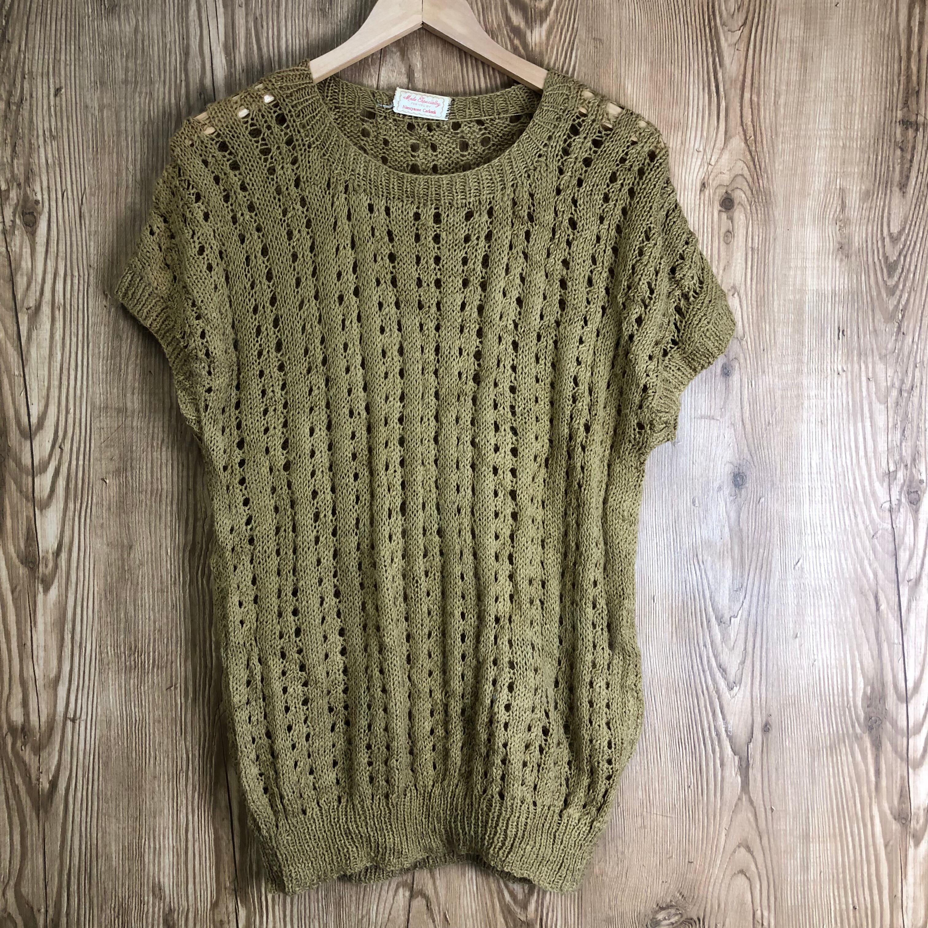 70s VINTAGE 透かし編み ニットセーター 半袖 レディースL位 70年代 ビンテージ ヴィンテージ アメカジ 古着 e24032822
