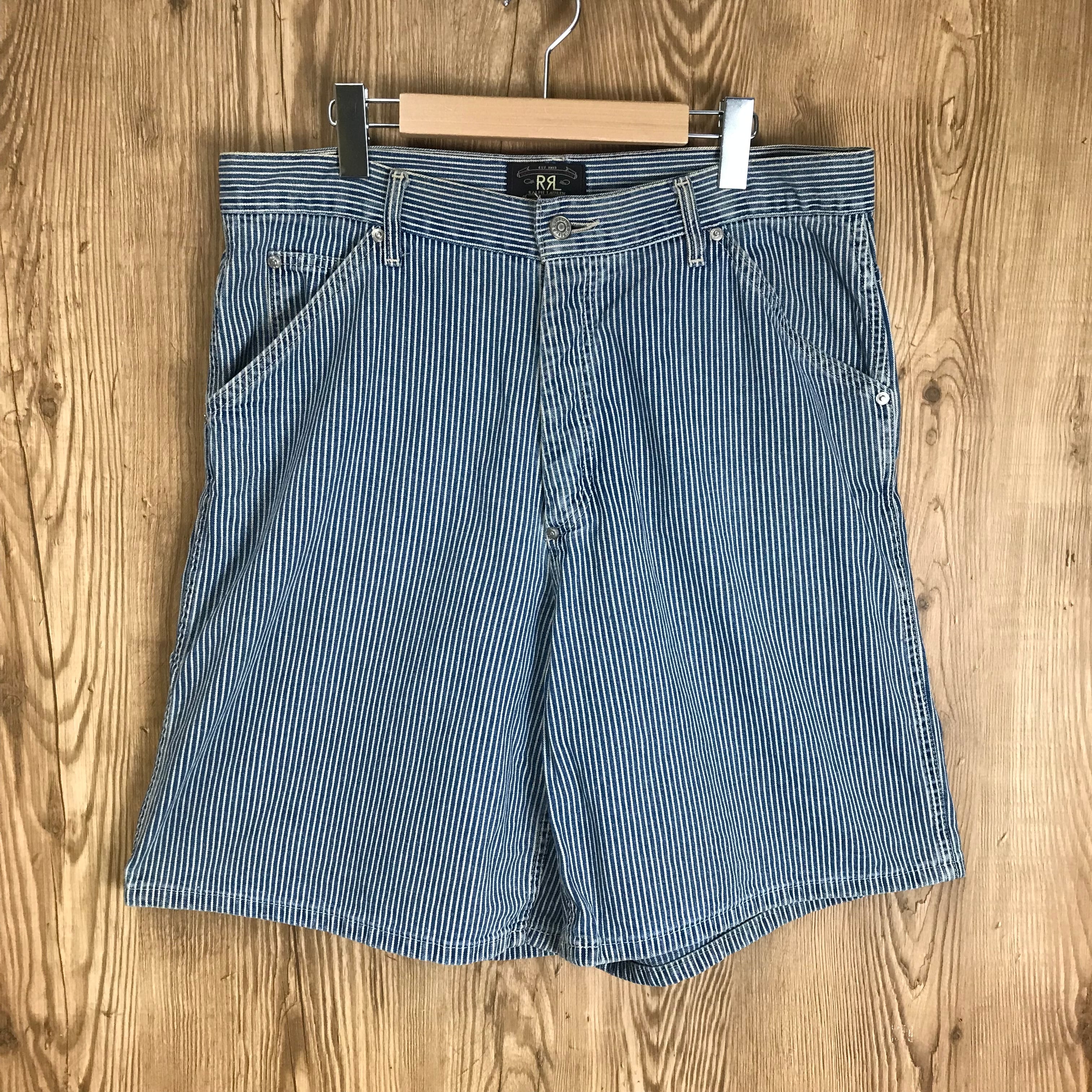 USA製 90s VINTAGE RRL ヒッコリー ワーク ショートパンツ ショーツ 半パン ダブルアールエル ラルフローレン メンズLサイズ程 90年代 アメリカ製 ビンテージ ヴィンテージ アメカジ 古着 e24040809