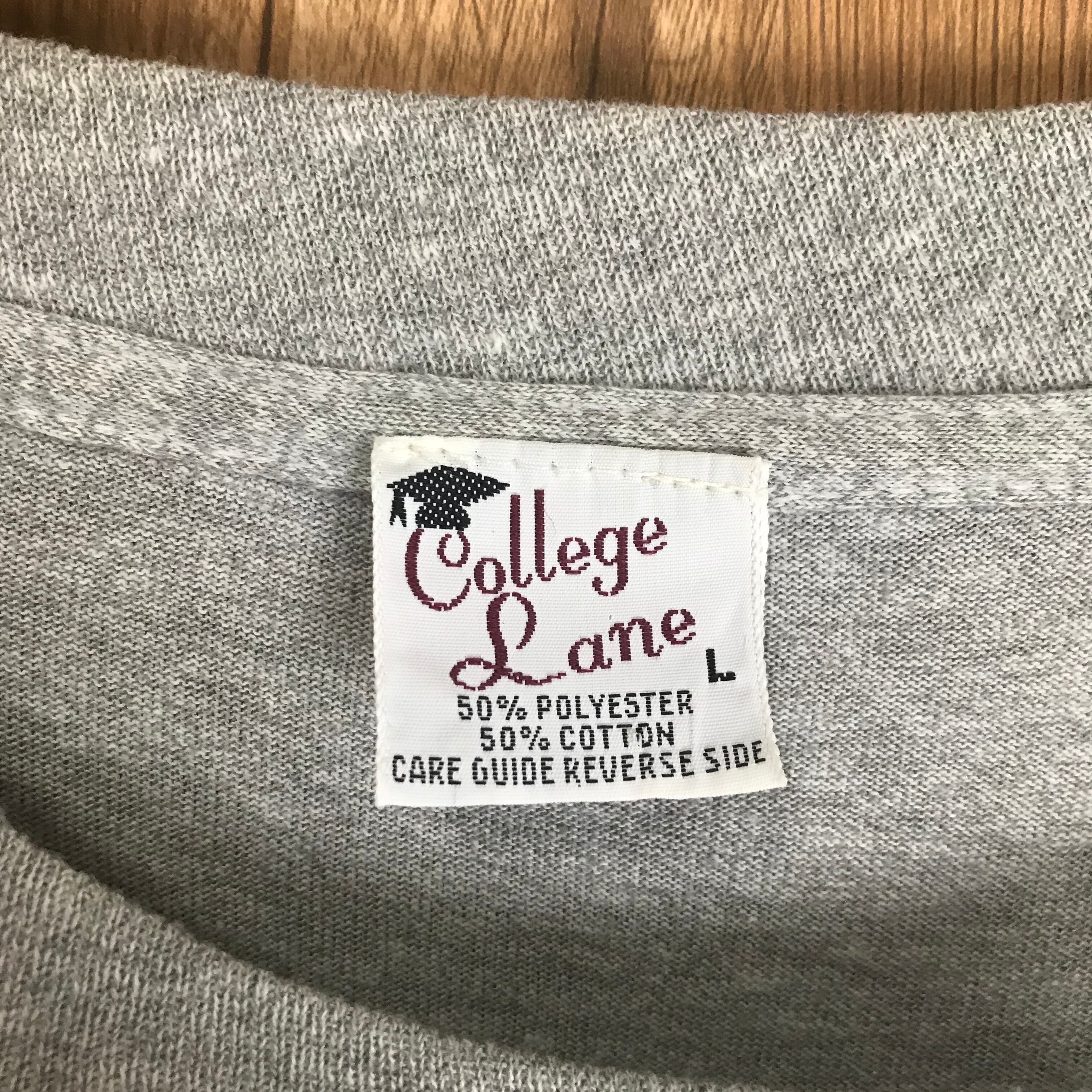80s VINTAGE College Lane 霜降りグレー プリント Tシャツ メンズL シングルステッチ 80年代 アメリカ製 ヴィンテージ ビンテージ アメカジ 古着 e24042207【WS30】【Tシャツ】