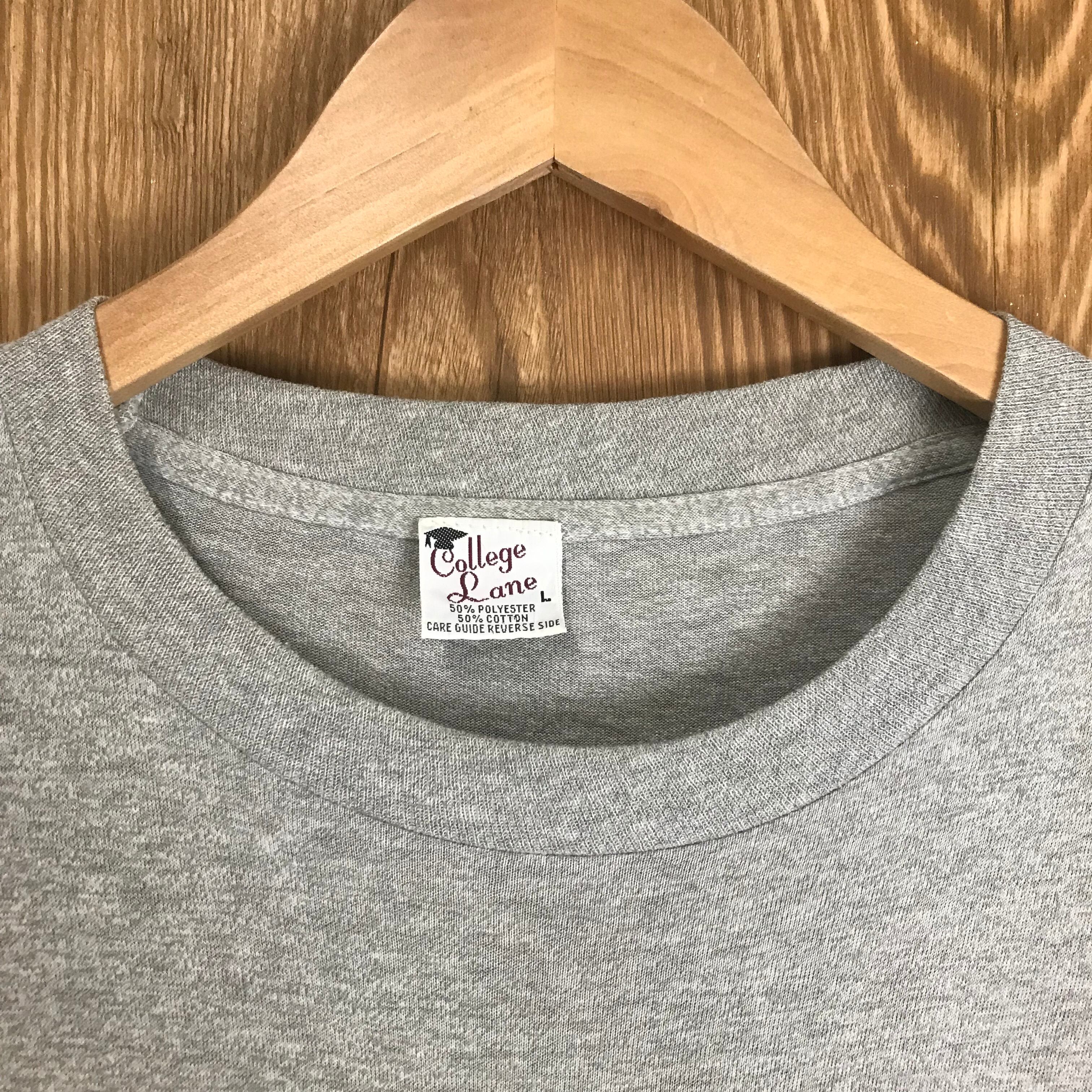 80s VINTAGE College Lane 霜降りグレー プリント Tシャツ メンズL シングルステッチ 80年代 アメリカ製 ヴィンテージ ビンテージ アメカジ 古着 e24042207