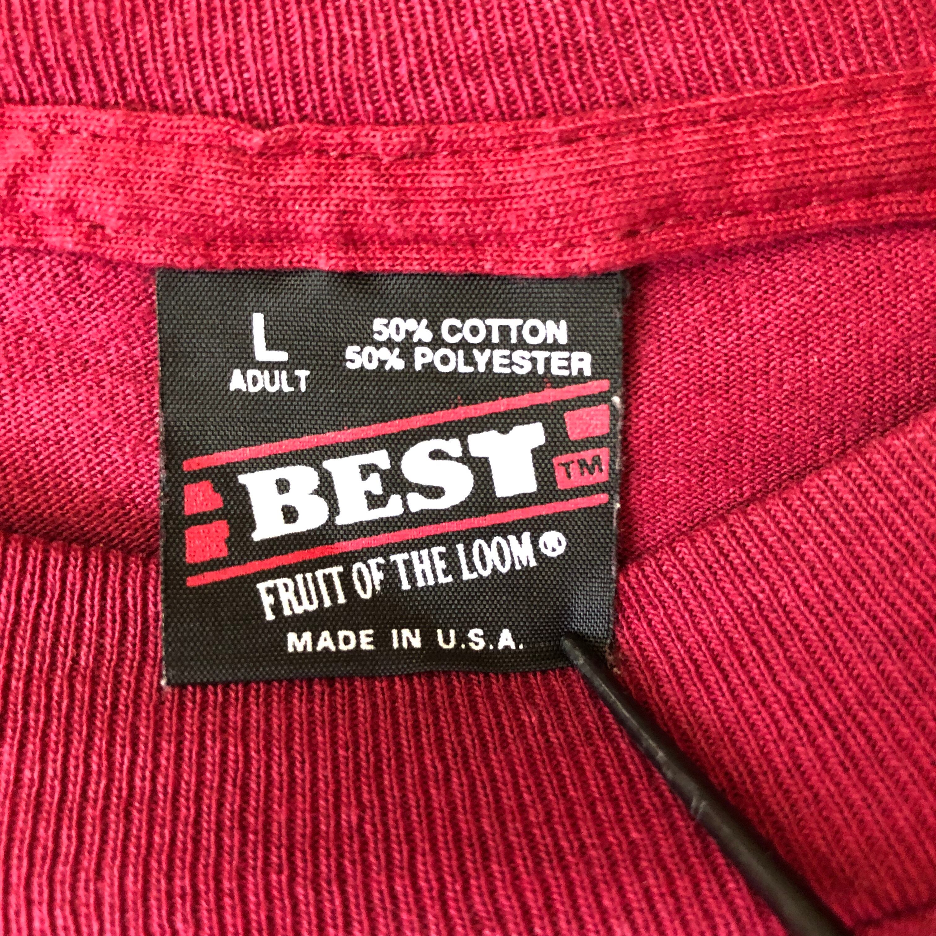 USA製 90s VINTAGE FRUITS OF THE LOOM BEST 黒タグ プリント Tシャツ メンズ L シングルステッチ 90年代 アメリカ製 フルーツオブザルーム ヴィンテージ ビンテージ アメカジ 古着 e24050732【WS30】【Tシャツ】