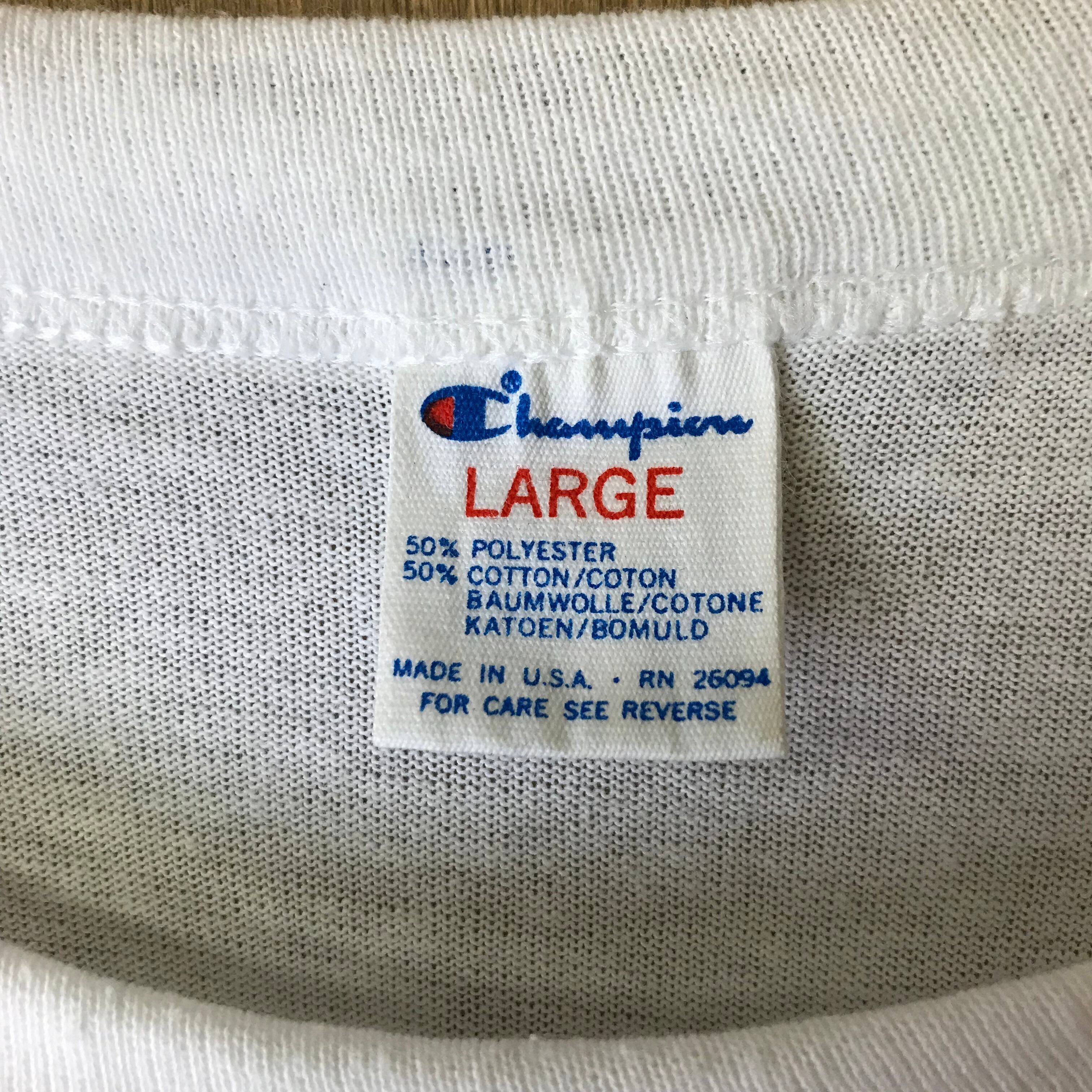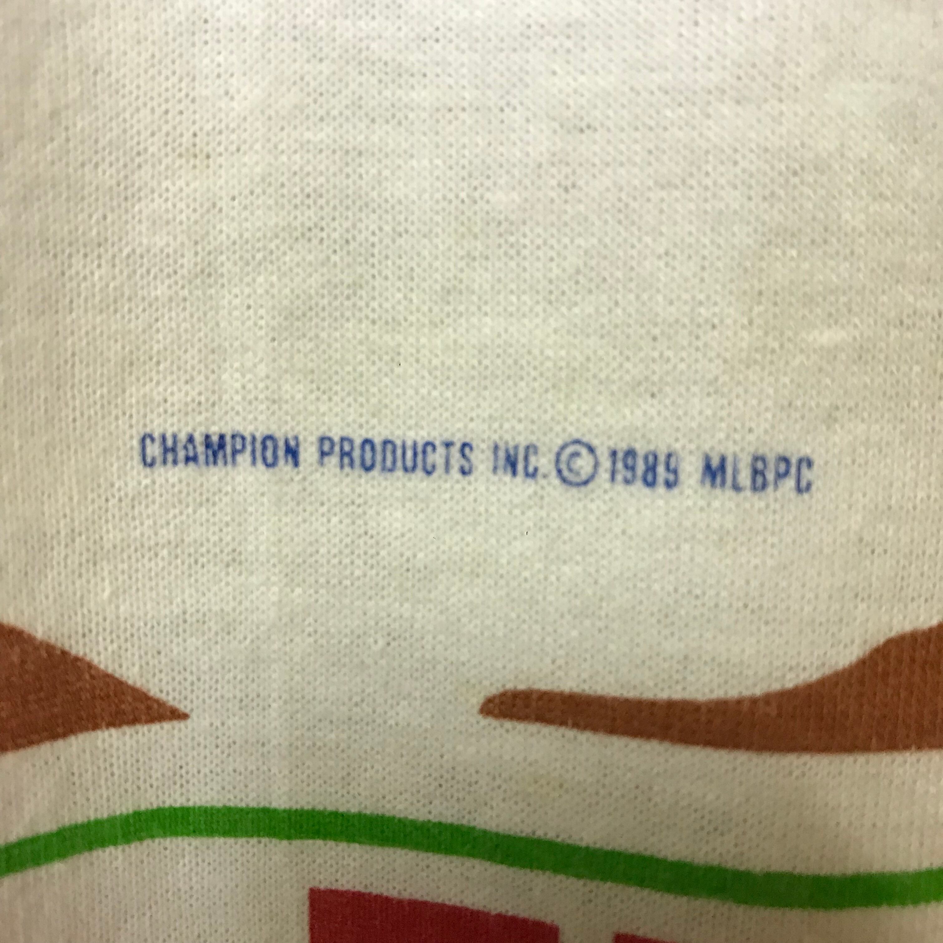 USA製 80s VINTAGE Champion トリコタグ MLB CUBS 染み込み プリント 半袖 T-sh Tシャツ サイズ メンズ L 80年代 アメリカ製 チャンピオン メジャーリーグ カブス ビンテージ ヴィンテージ ストリート アメカジ 古着 s24070310