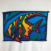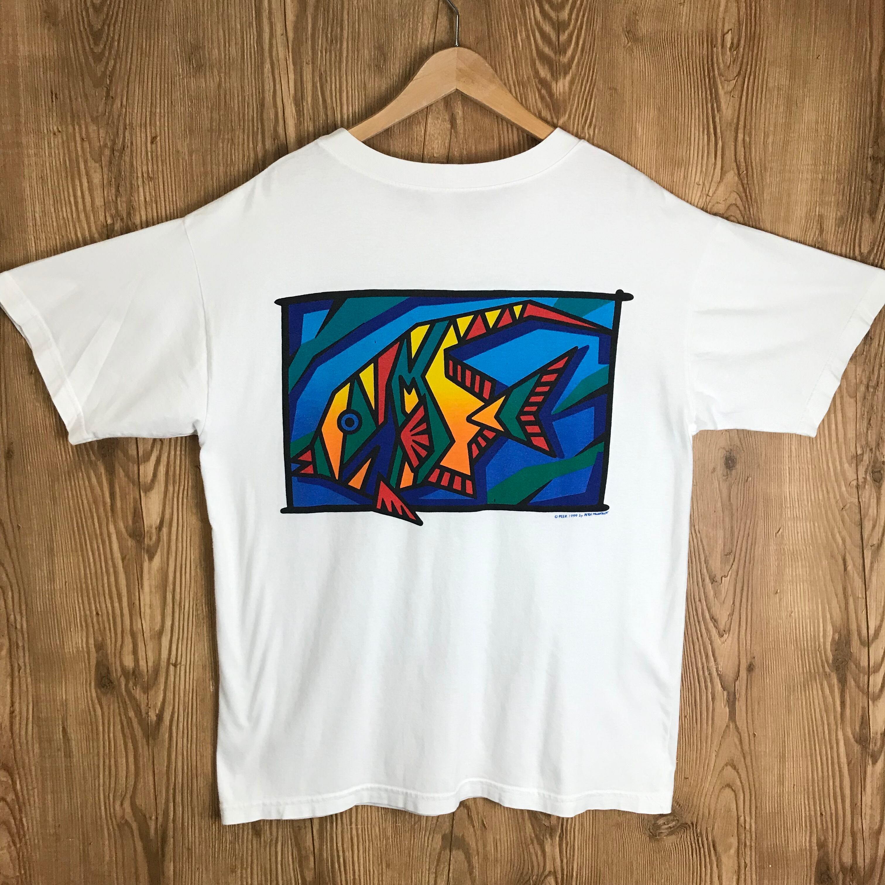 90s VINTAGE Great Barrier Reef 魚 グラフィック アート デザイン 染み込みプリント 半袖 T-sh Tシャツ サイズ メンズ L位 90年代 グレートバリアリーフ ビンテージ ヴィンテージ ストリート アメカジ 古着 s24070833