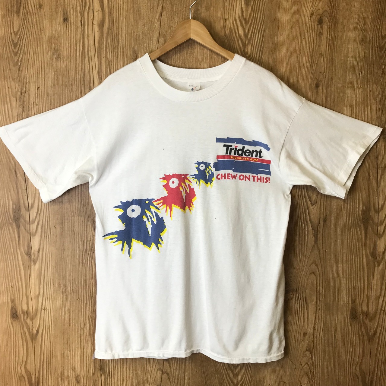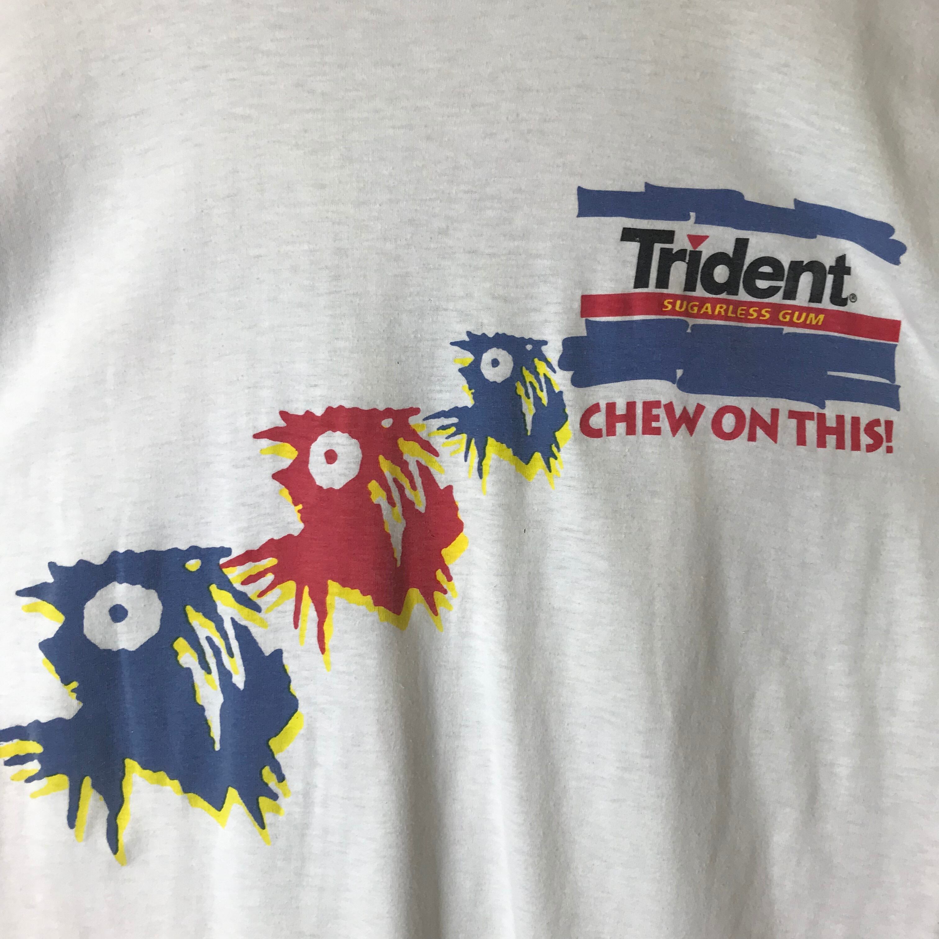 90s VINTAGE MTV × トライデント シュガーレスガム 企業物 両面プリント 半袖 キャラ T-sh Tシャツ サイズ メンズ XL シングルステッチ 90年代 Trident ビンテージ ヴィンテージ ストリート アメカジ 古着 s24071021