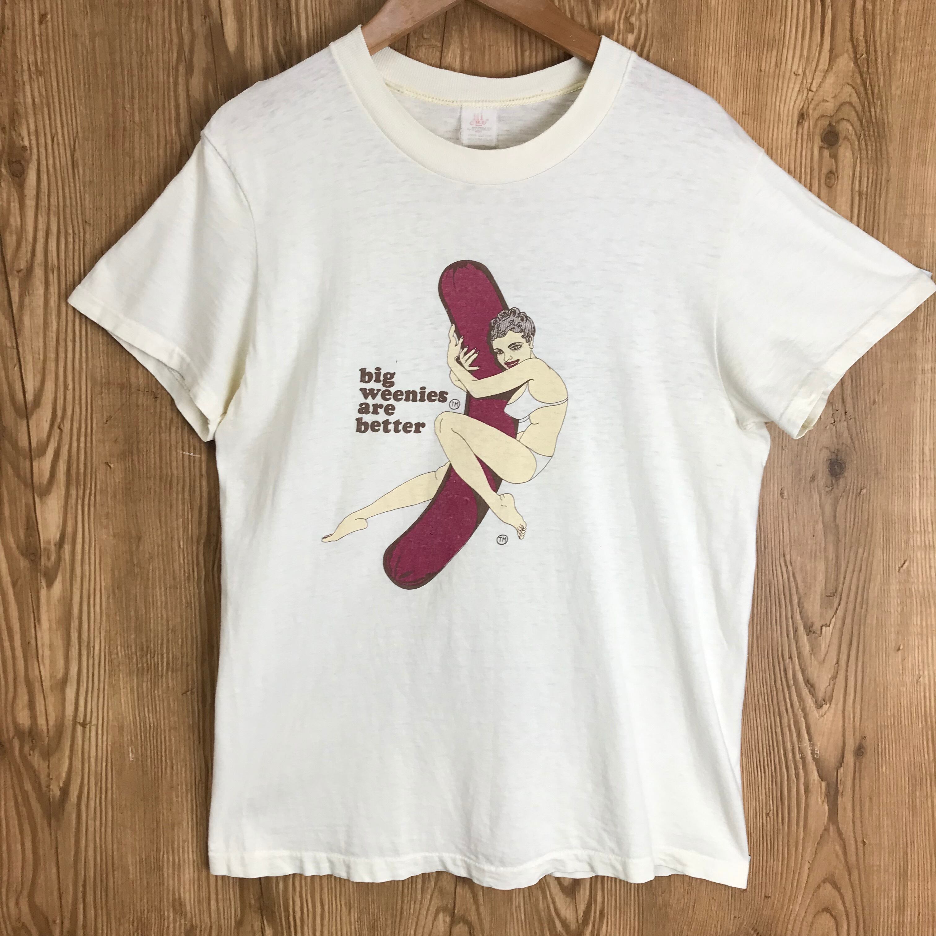 70s VINTAGE BIG WEENIE エロ ヌード プリント 半袖 T-sh Tシャツ サイズ メンズ M シングルステッチ 70年代 HI CRU コットン100% ビンテージ ヴィンテージ ストリート アメカジ 古着 s24071639【ES2407-20】【Tシャツ】