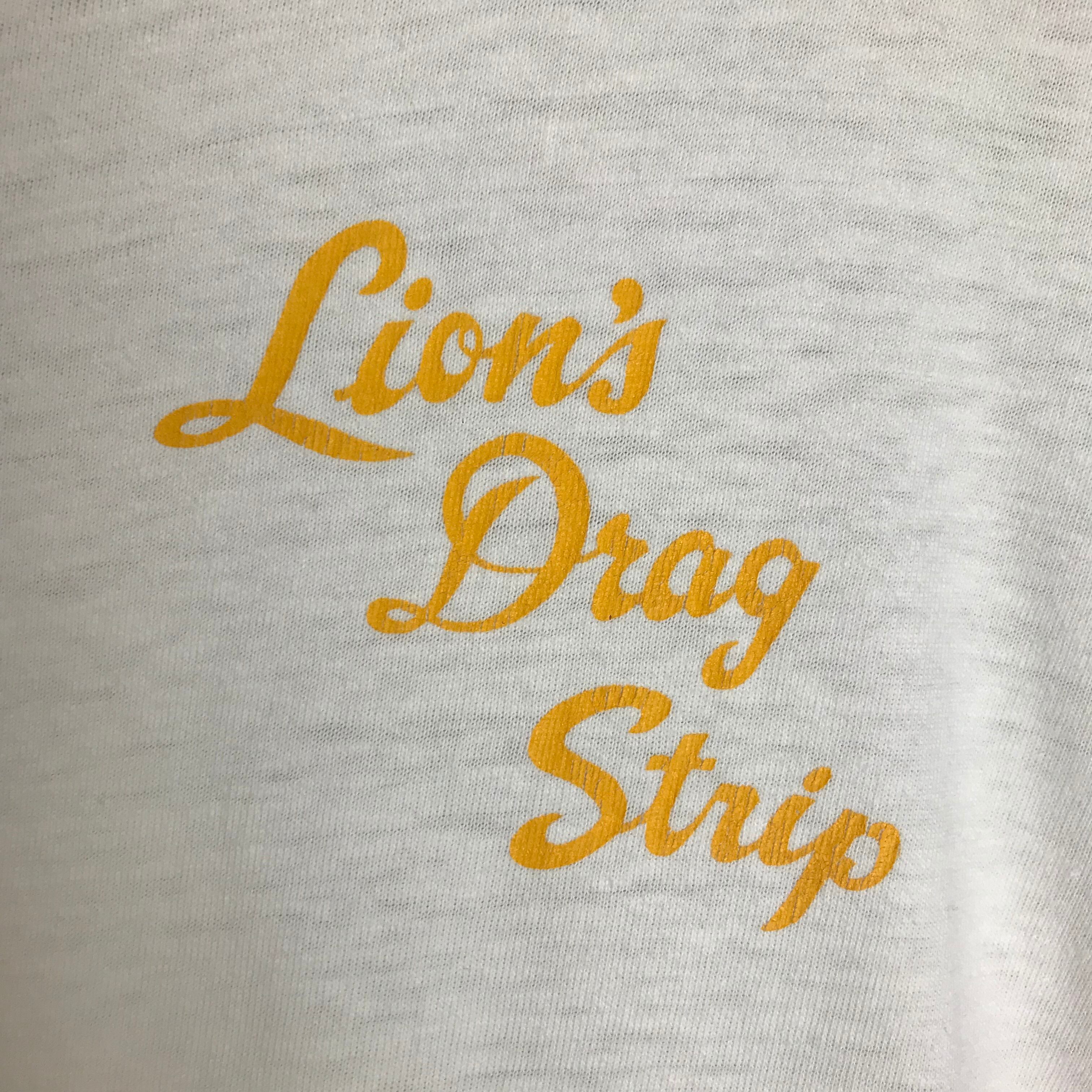 USA製 80s VINTAGE LION'S DRAG STRIP 両面プリント 半袖 T-sh Tシャツ サイズ メンズ XL シングルステッチ 80年代 アメリカ製 HANES ヘインズ ドラッグレース ビンテージ ヴィンテージ ストリート アメカジ 古着 s24071643