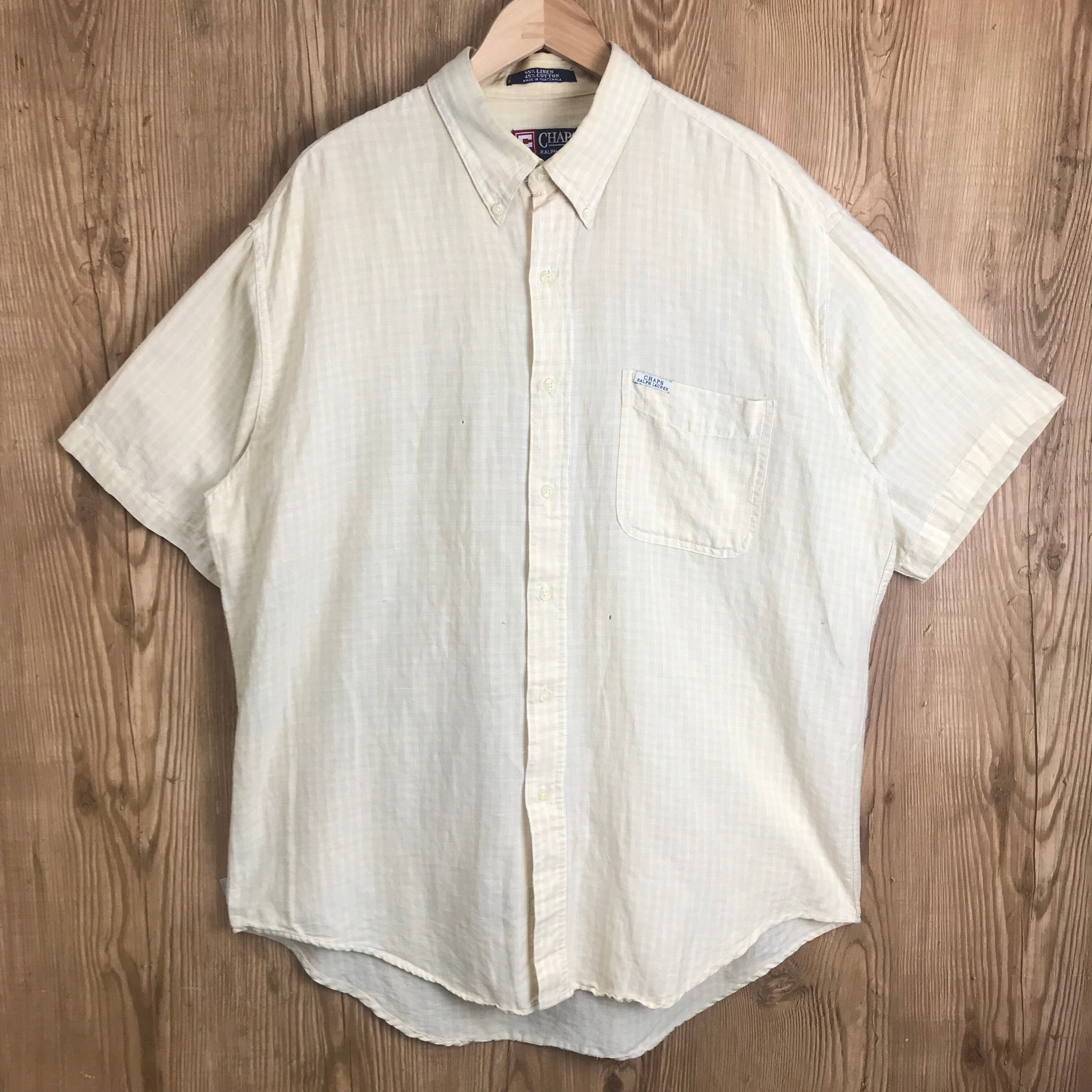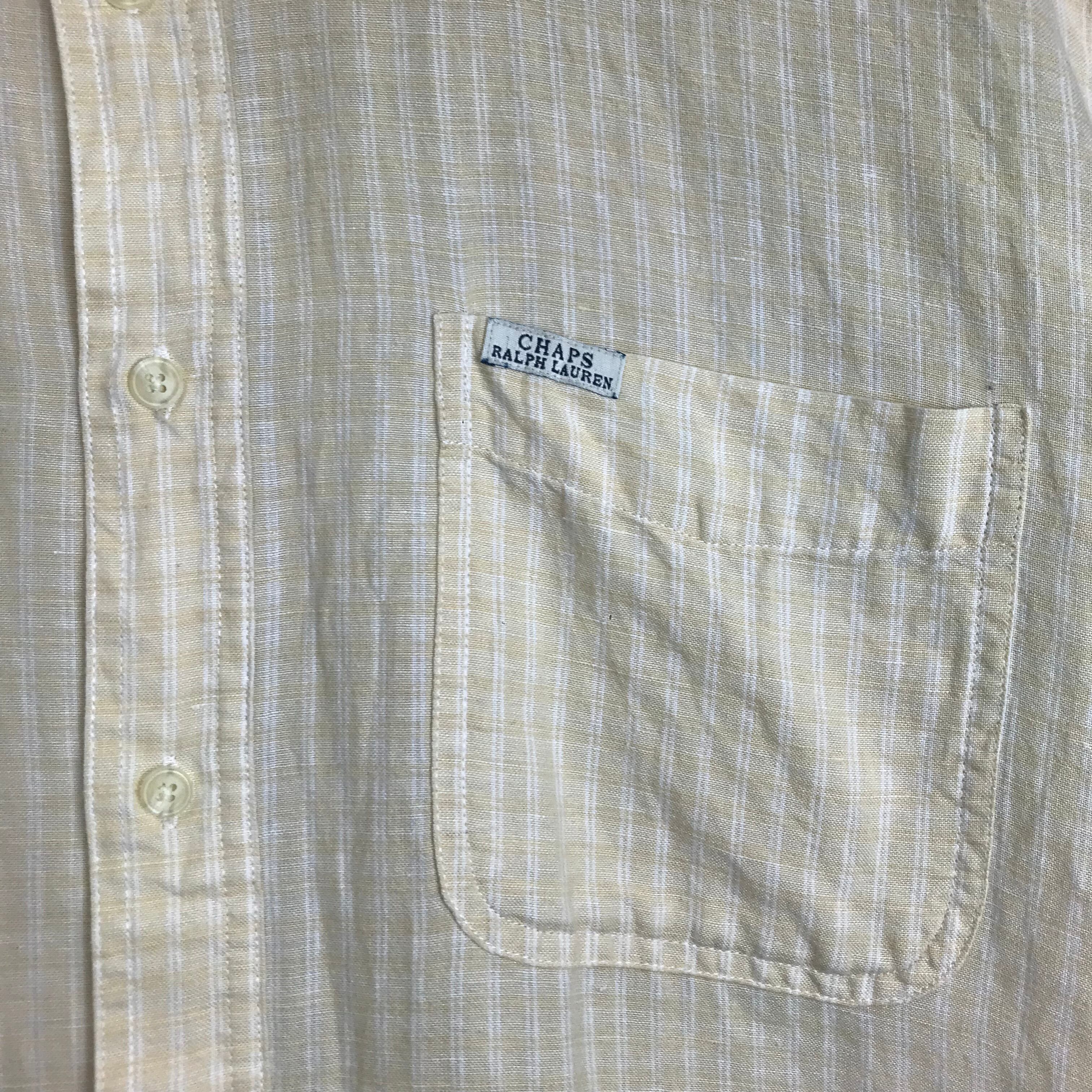 90s CHAPS RALPH LAUREN B.D S/S SHIRTS チャップス ラルフローレン ボタンダウン リネン素材 チェック柄 半袖シャツ ショートスリーブシャツ サイズ メンズ L 90年代 VINTGE ビンテージ ヴィンテージ ストリート アメカジ 古着 s24080213
