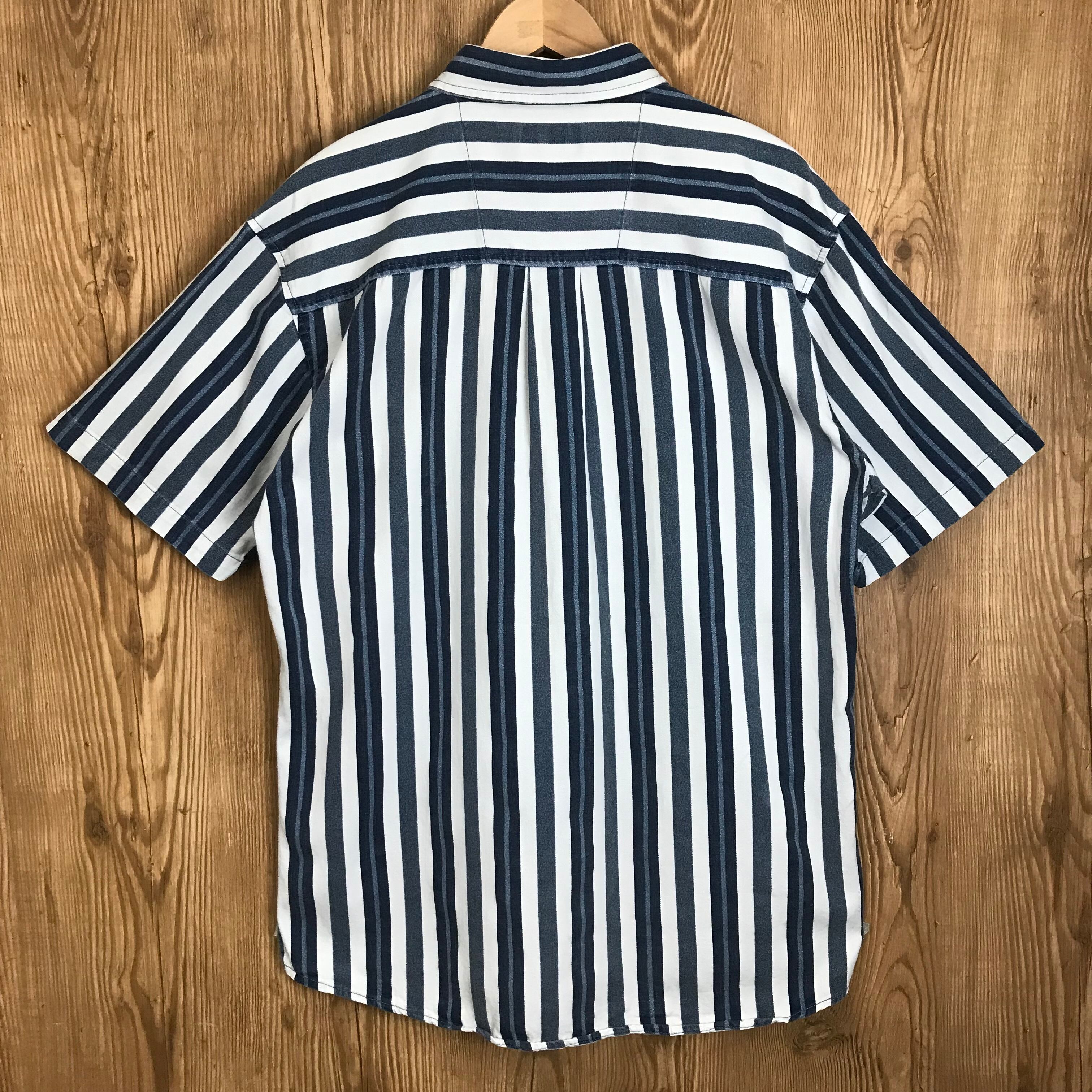 90s FADED GLORY B.D S/S SHIRTS フェイデッドグローリー ストライプ柄 ボタンダウン 半袖シャツ ショートスリーブシャツ サイズ メンズ M 90年代 VINTGE ビンテージ ヴィンテージ アウトドア ストリート アメカジ 古着 s24080239【WS30】【半袖シャツ】