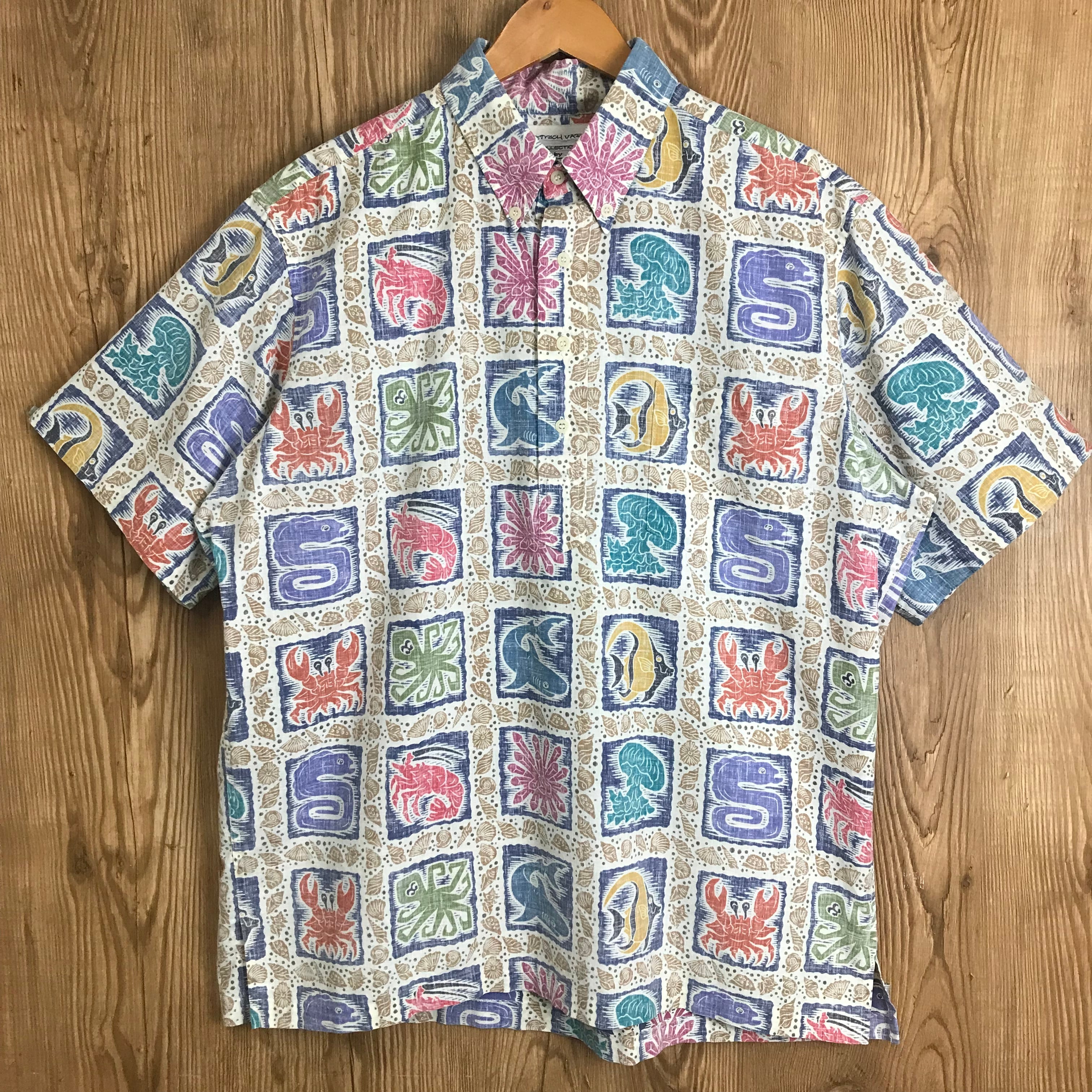 80s REYN SPOONER MULTI B.D PULLOVER S/S SHIRTS レインスプーナー ハワイアンシャツ アロハシャツ 総柄 プルオーバー ボタンダウン 半袖シャツ ショートスリーブシャツ サイズ メンズ L 80年代 VINTAGE ビンテージ ヴィンテージ ストリート アメカジ 古着 s24080251