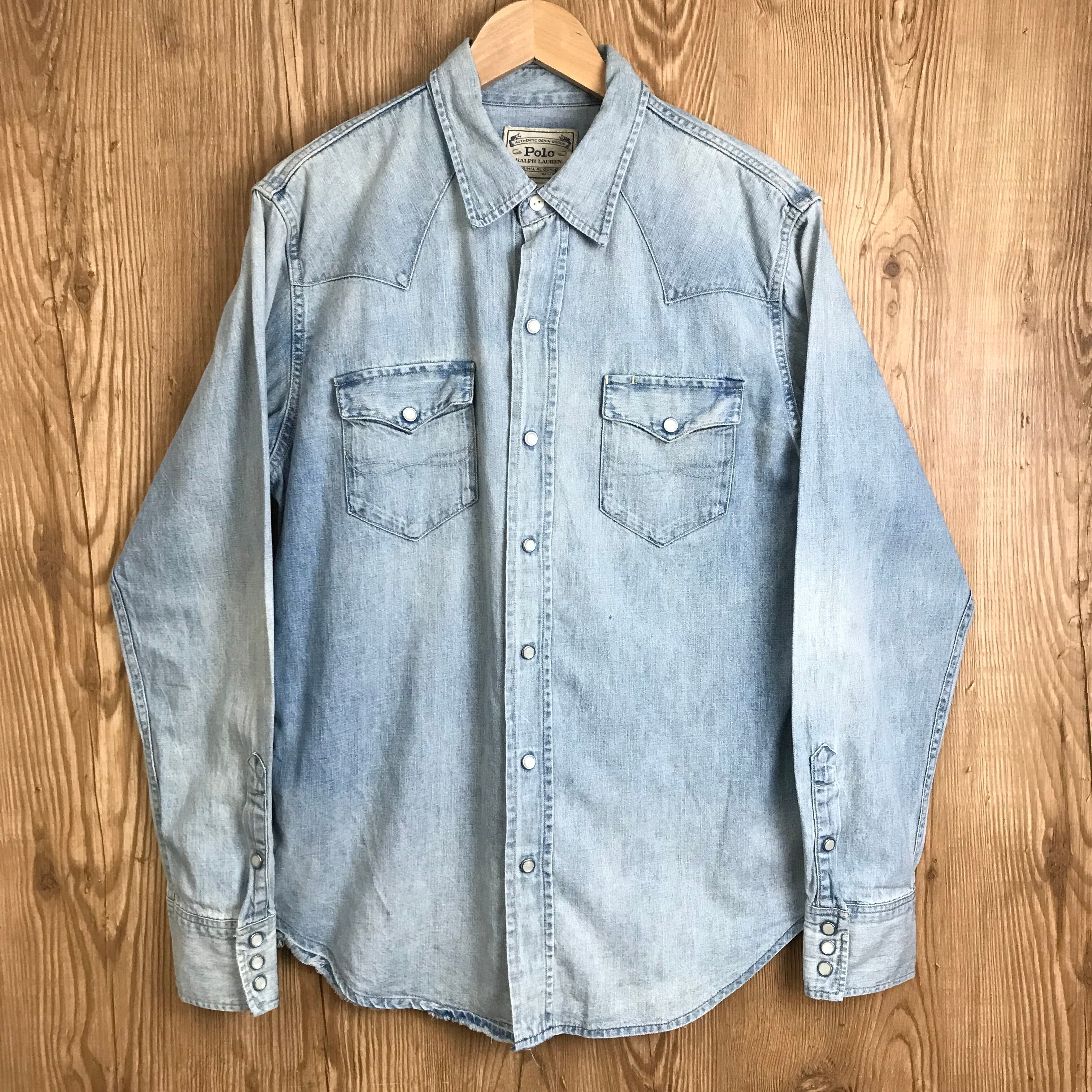 POLO RALPH LAUREN ポロ ラルフローレン USED加工 デニムウエスタンシャツ 長袖シャツ ロングスリーブシャツ サイズ メンズ M ストリート アメカジ 古着 s24081084