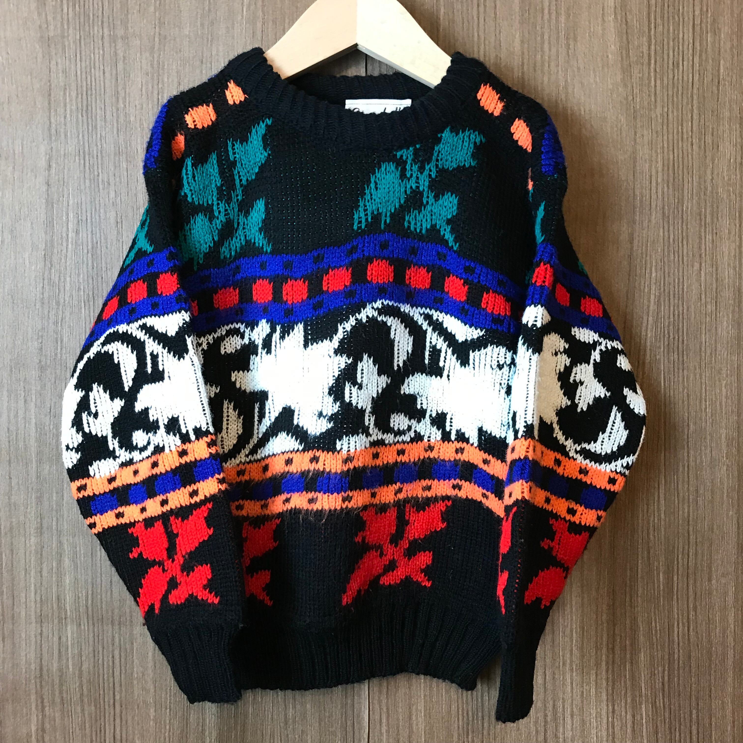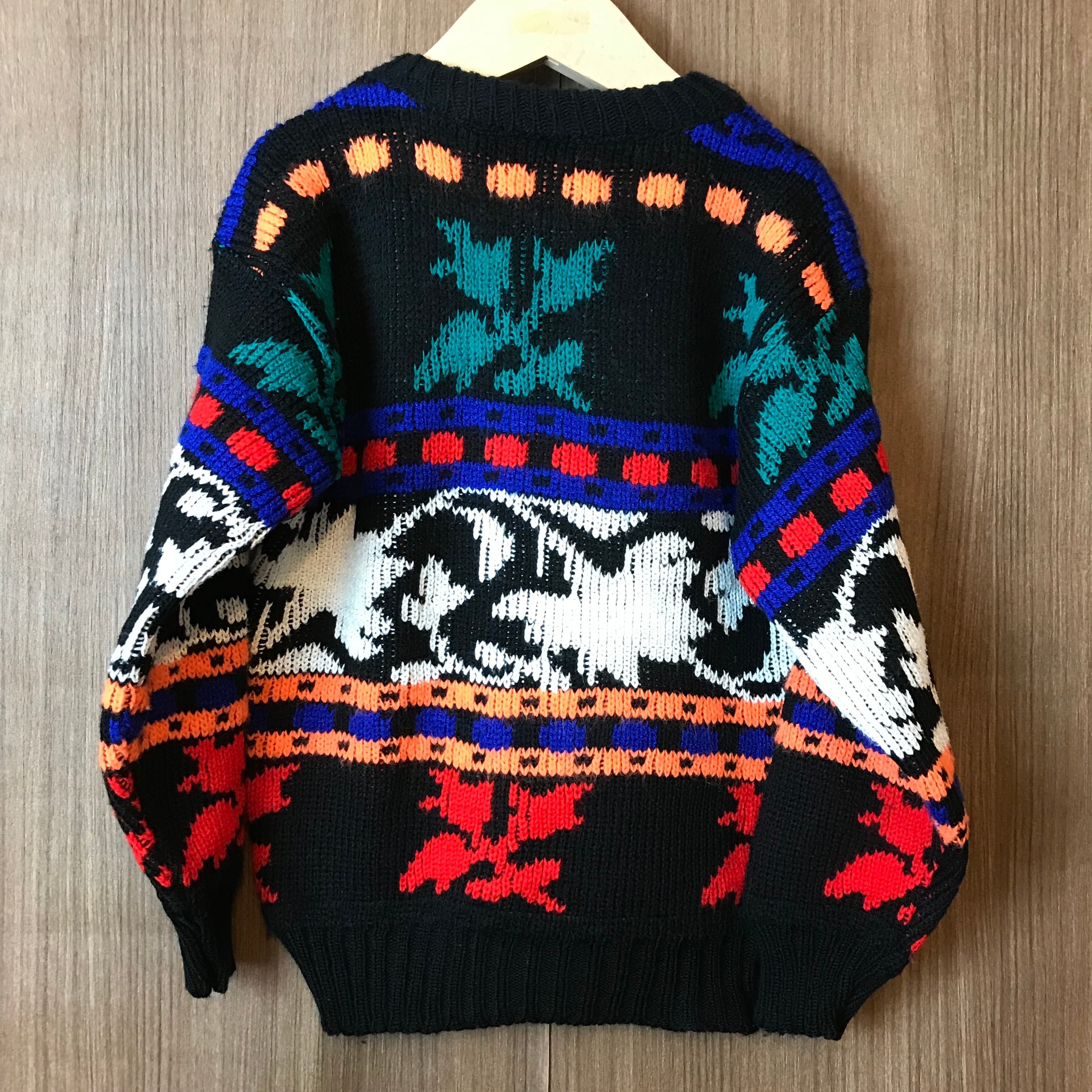 《キッズ》USA製 90s マルチパターン 総柄 ニット セーター サイズ 4 90年代 アメリカ製 VINTAGE ビンテージ ヴィンテージ ストリート アメカジ 古着 k24110120