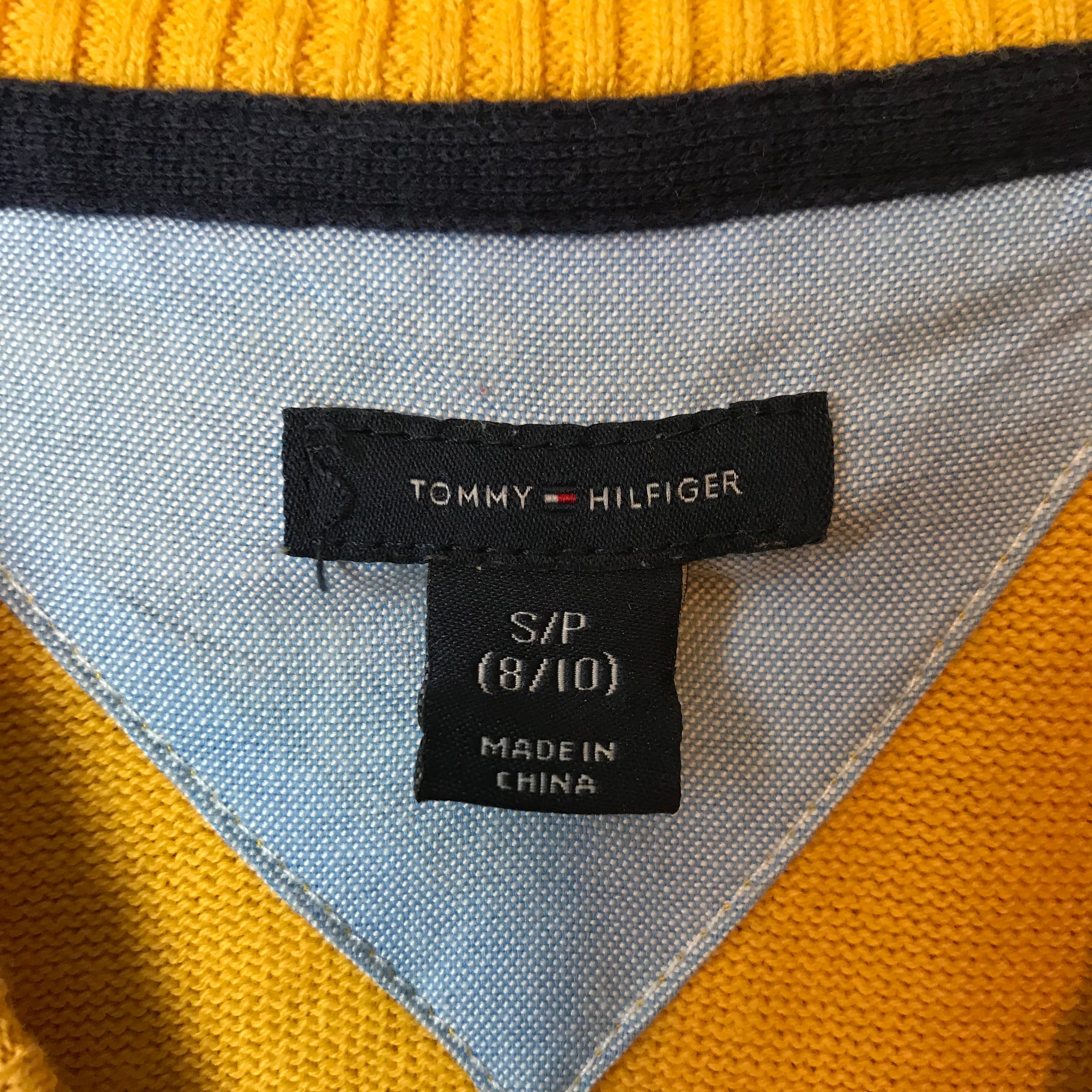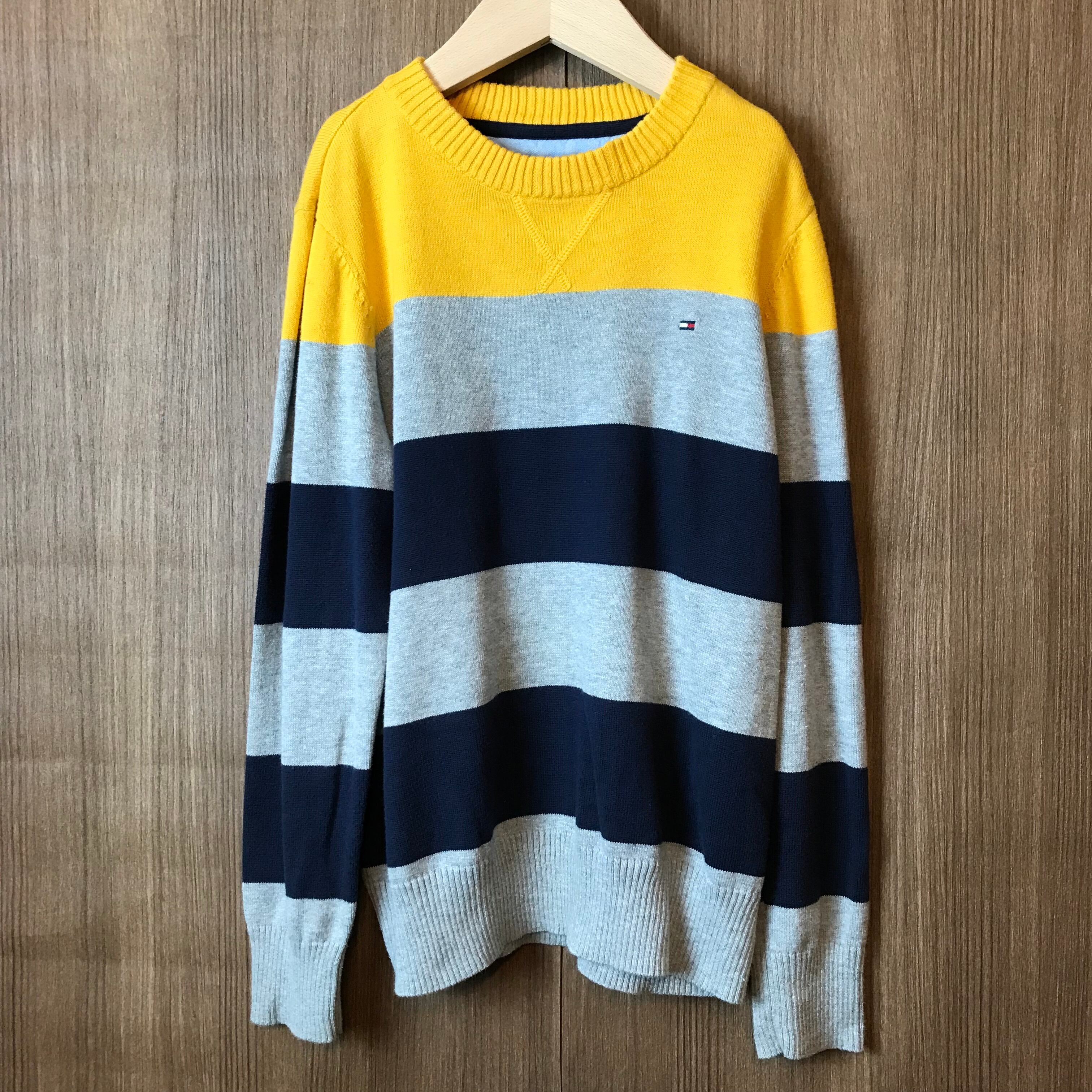 《キッズ》Tommy Hilfiger トミー ヒルフィガー 切り替え ボーダー ニット セーター サイズ S/P 8/10 ストリート アメカジ 古着 k24110122