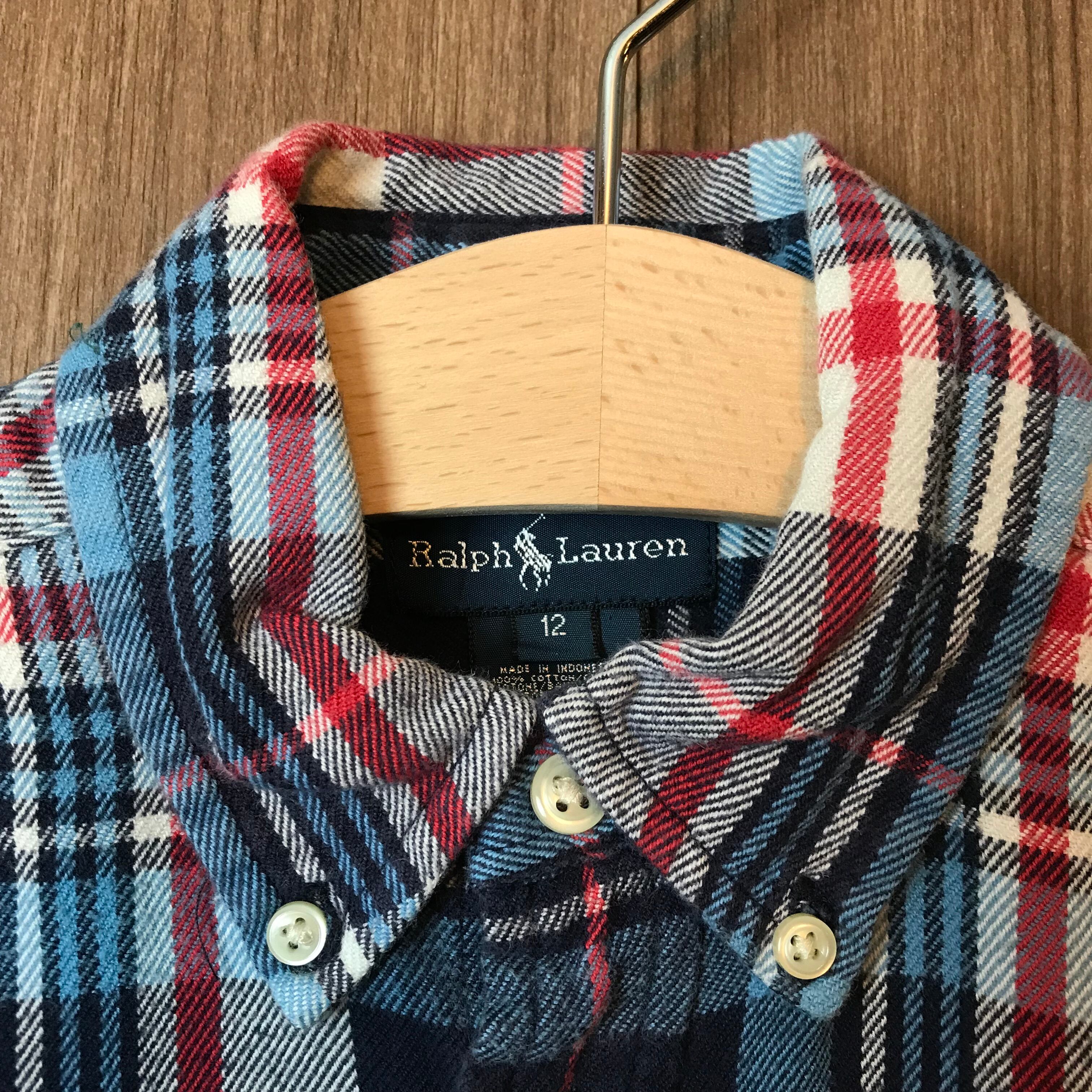 《キッズ》Ralph Lauren ラルフローレン ボタンダウン ネルシャツ ロングスリーブシャツ 長袖シャツ サイズ L ストリート アメカジ 古着 k24110170