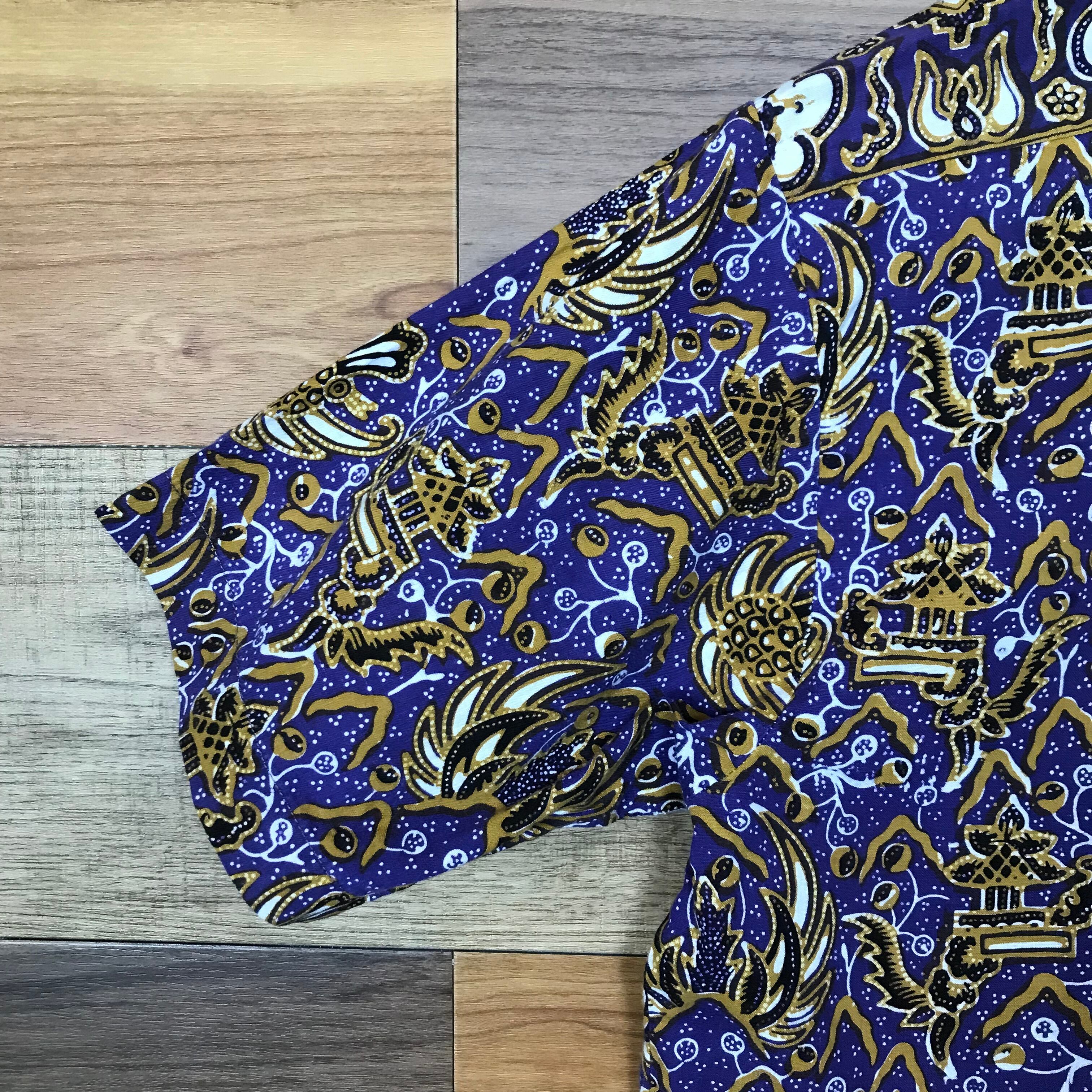 70s〜80s オリエンタル 総柄 コットン 半袖シャツ サイズ メンズ M 70年代 80年代 VINTAGE ビンテージ ヴィンテージ ストリート アメカジ 古着 s25020981【半袖シャツ】